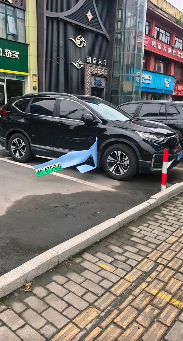 这真的不是AI吗感觉像是蓝车从车位倒出去的时候前脸挂住了旁边的黑车,然后就直接撕下来了。。。
