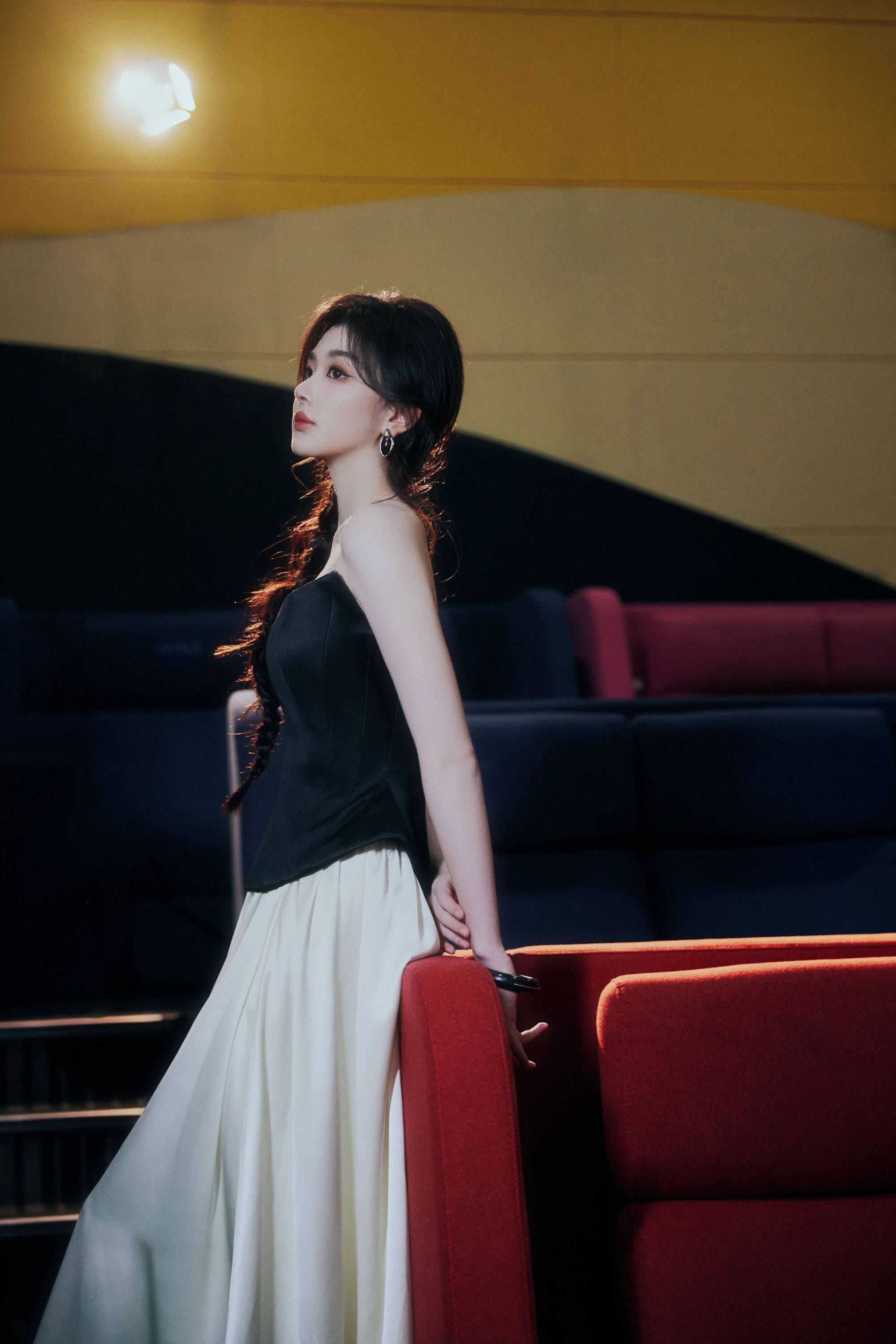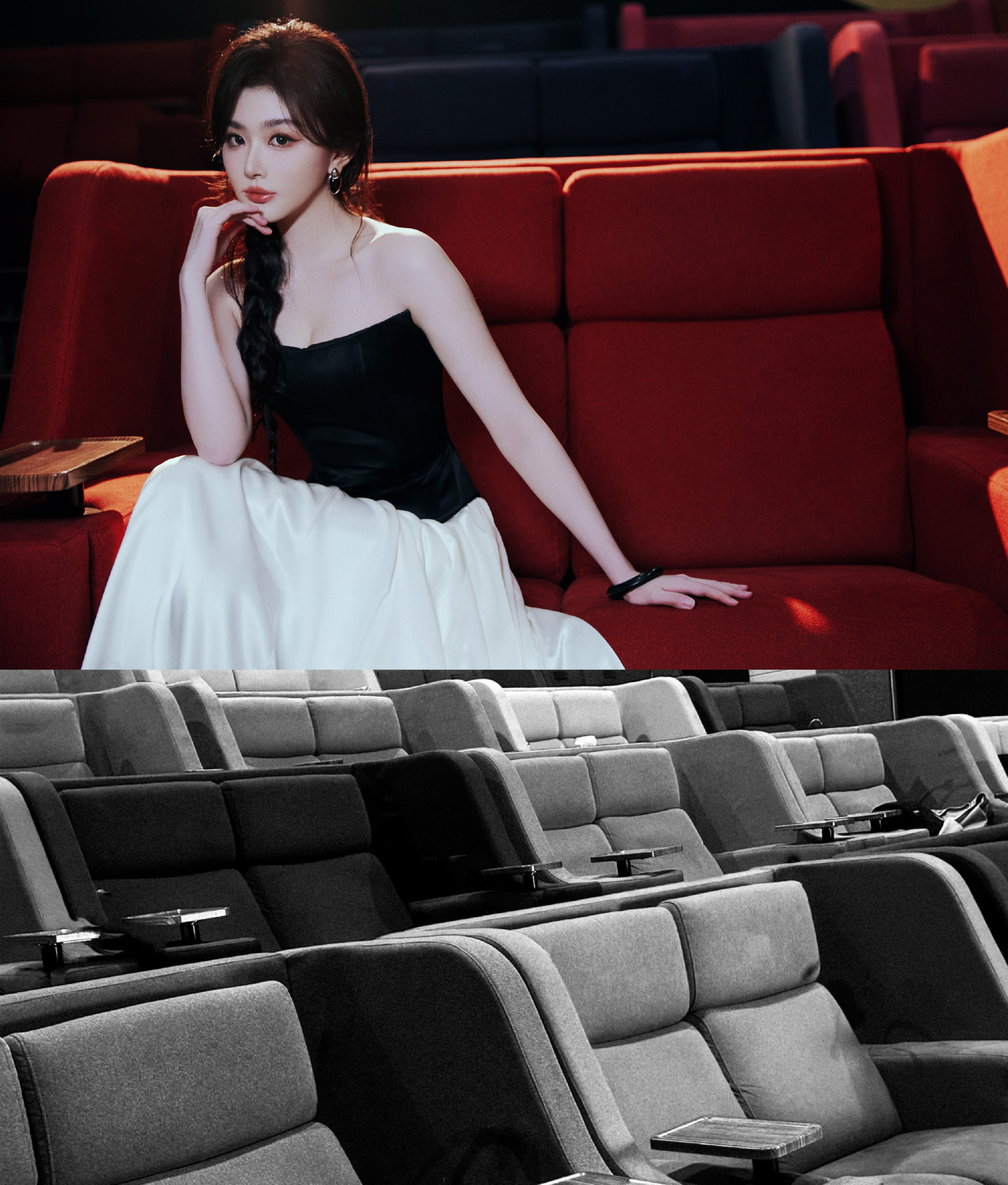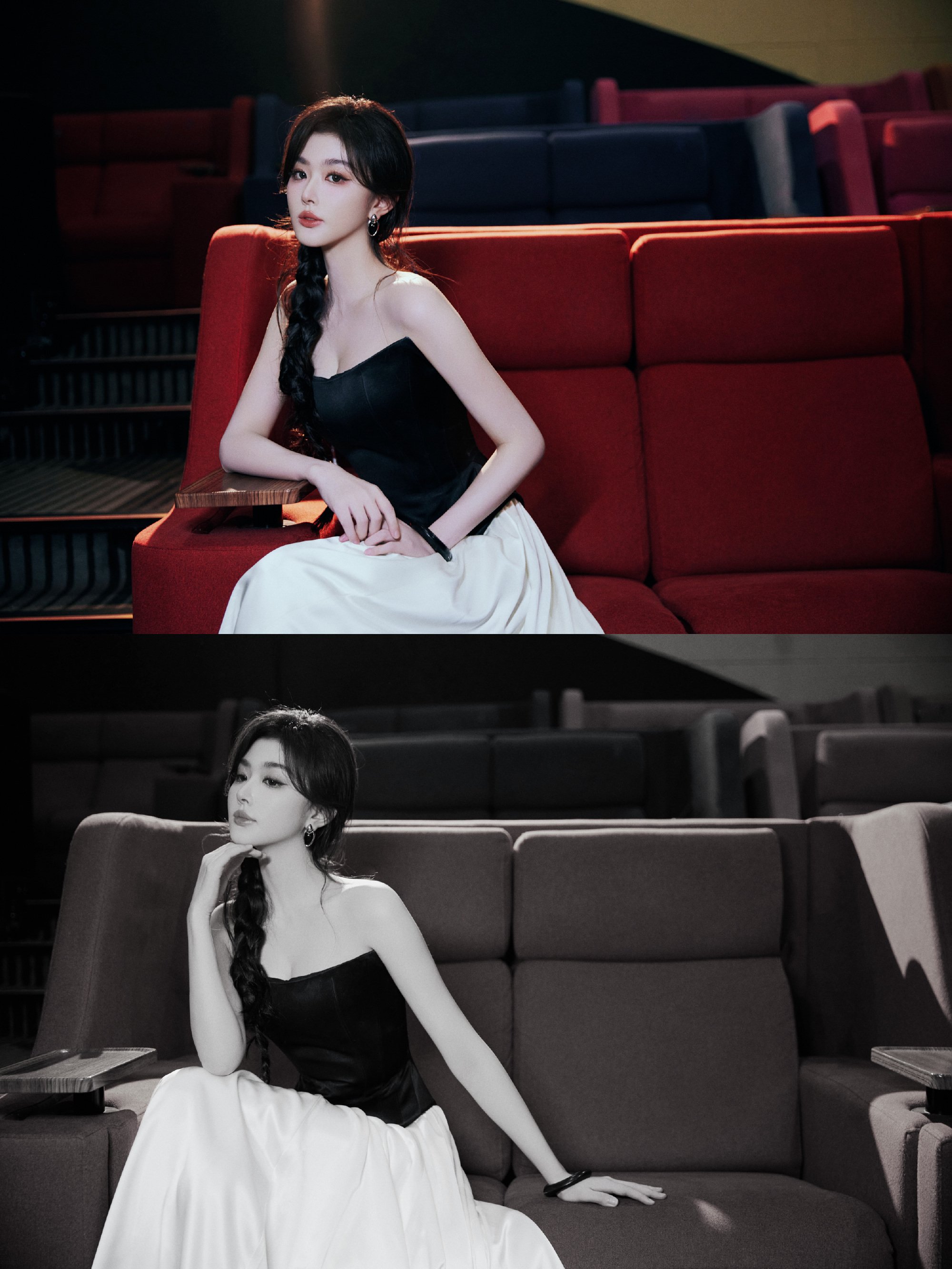 孔雪儿麻花辫少女:一袭黑白色调长裙,光影浮动,动人摄魄。孔雪儿