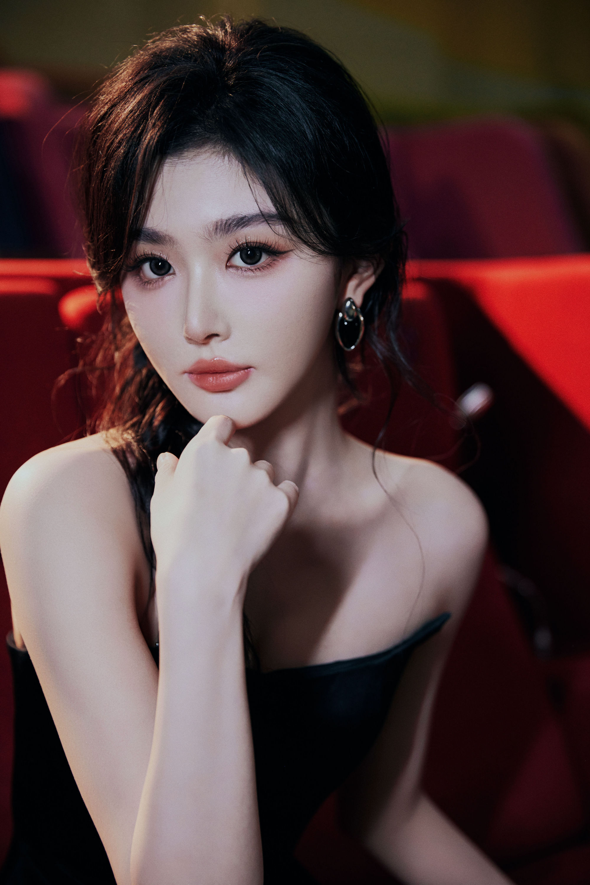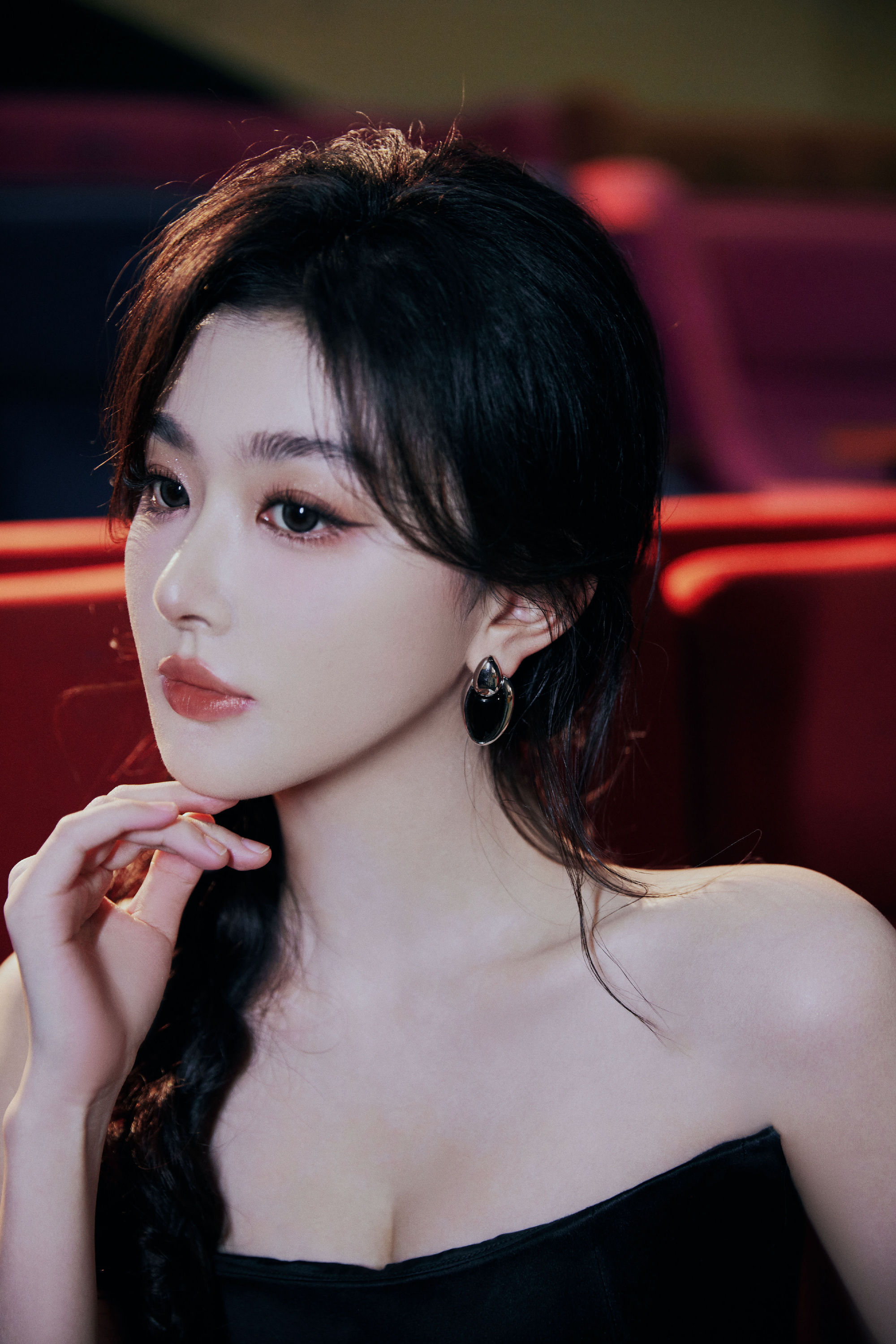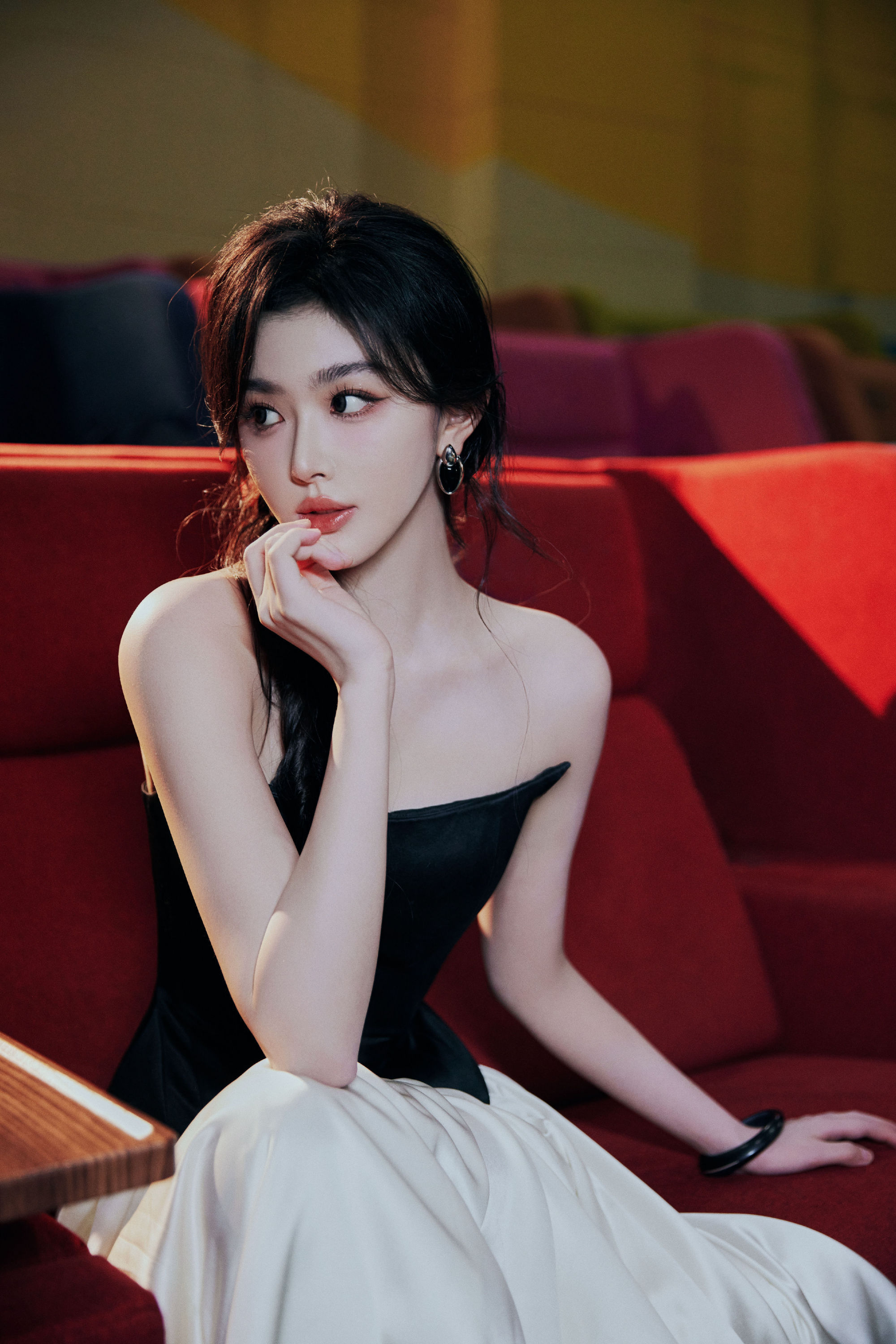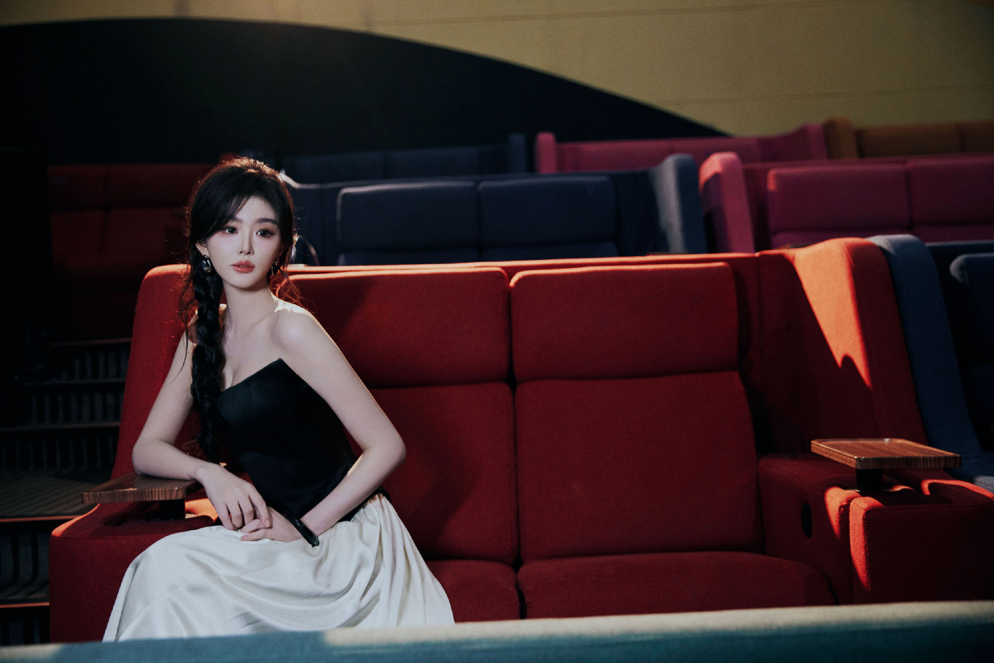 孔雪儿麻花辫少女:一袭黑白色调长裙,光影浮动,动人摄魄。孔雪儿