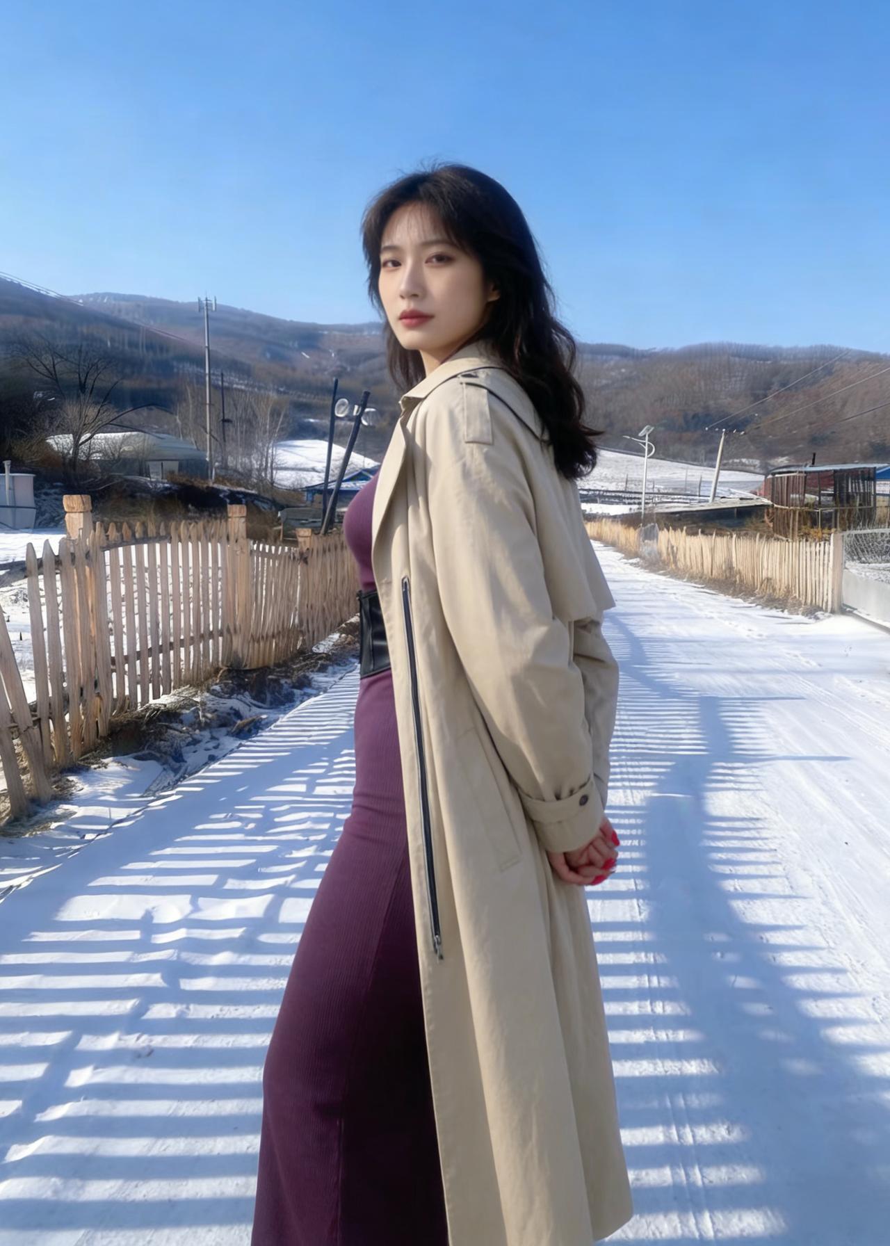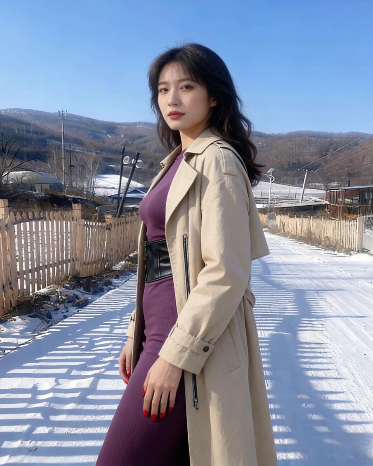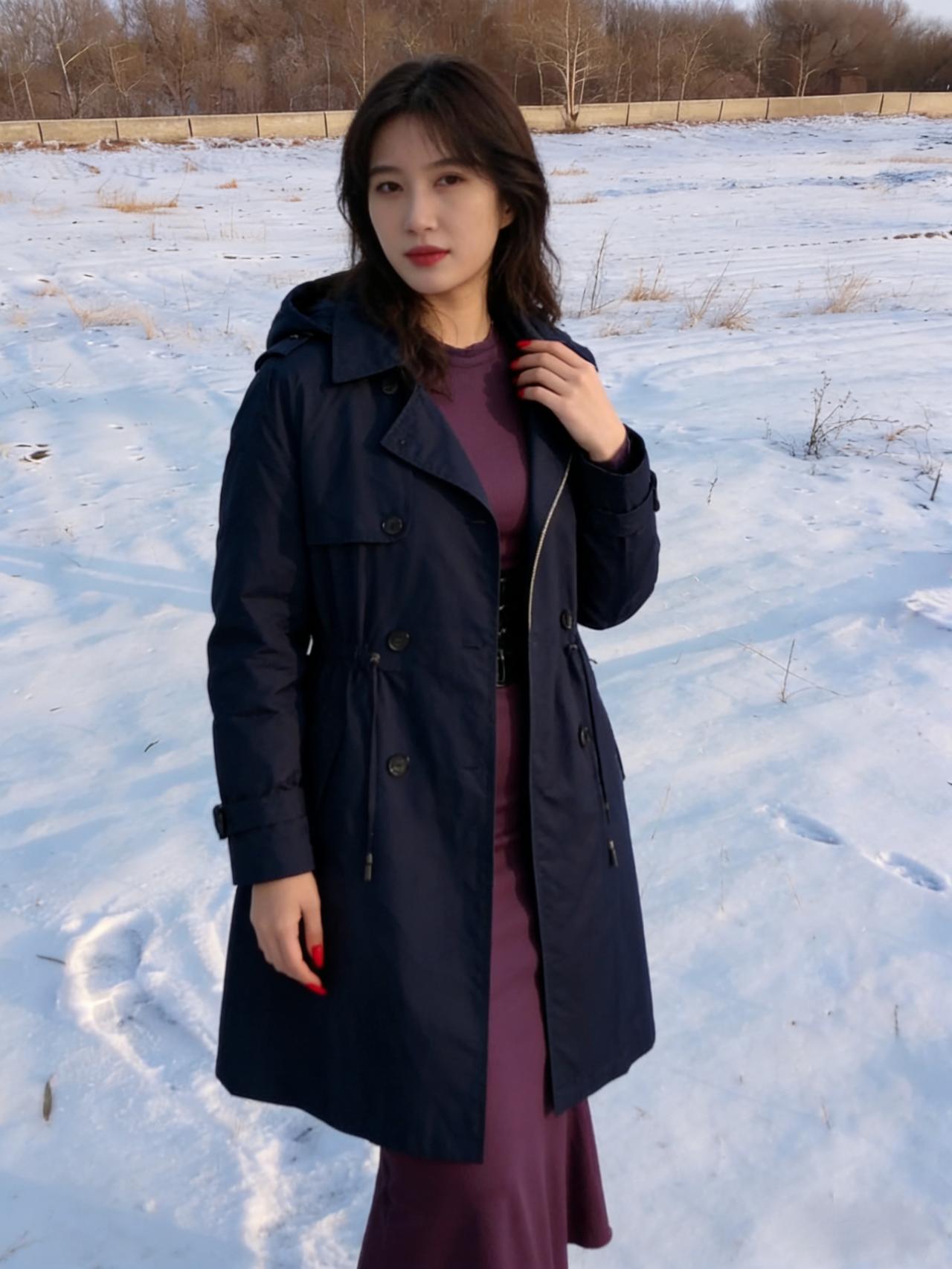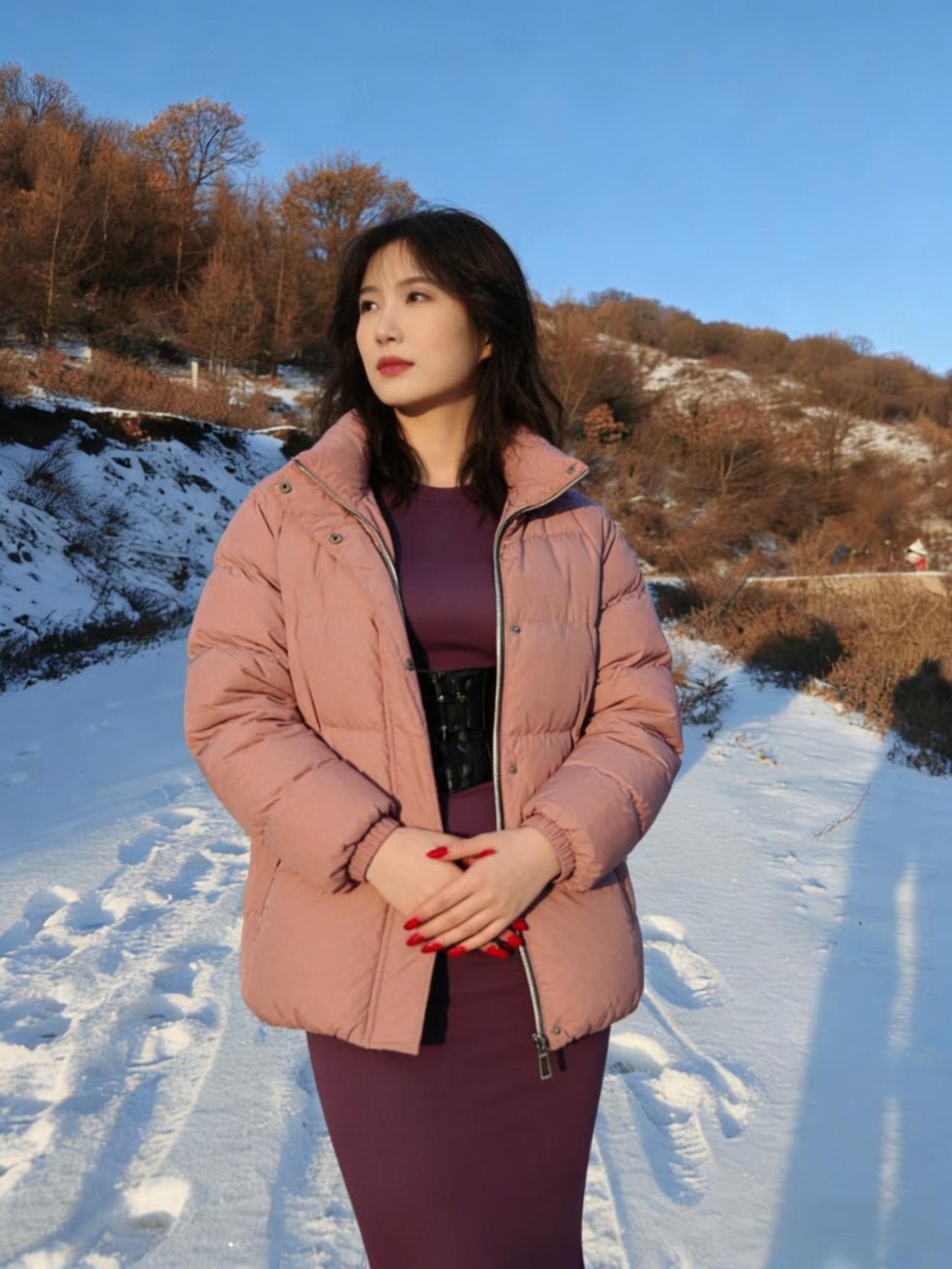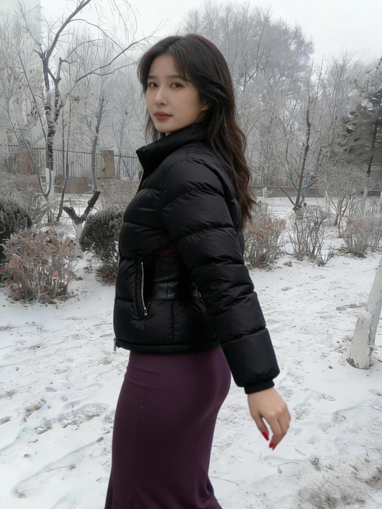 我偏要在雪天,穿紫色的裙, 让白雪做背景,衬我的热烈。 露出来的腰,是向寒冬的挑衅, 腰封勒出的曲线,是自我的宣言。 ~ 管它雪有多冷,风有多尖, 我要让色彩,盛开在荒原, 让自己,成为冬日里, 最炽烈的美艳。 ~ 红指甲是跳动的火焰, 紫裙是彩霞约舒展, 在这片素白里, 我只做我自己。