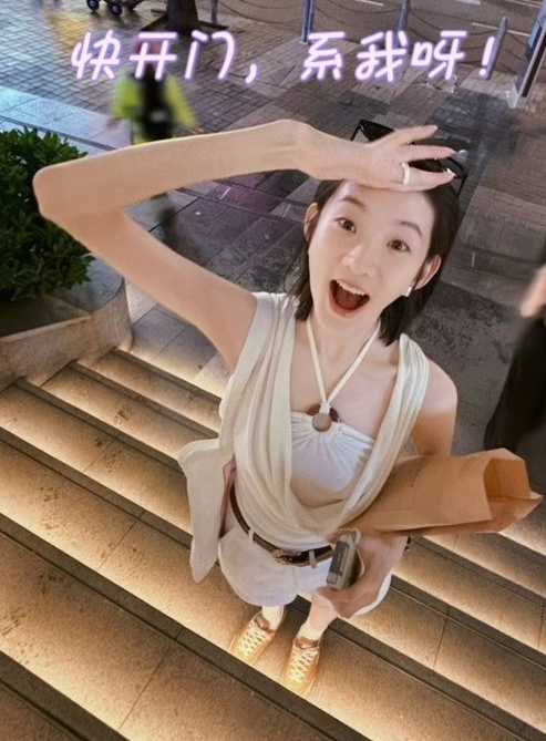 孔雪儿云包场逐玉雪儿金色一字带细高跟+白色一字带细高跟