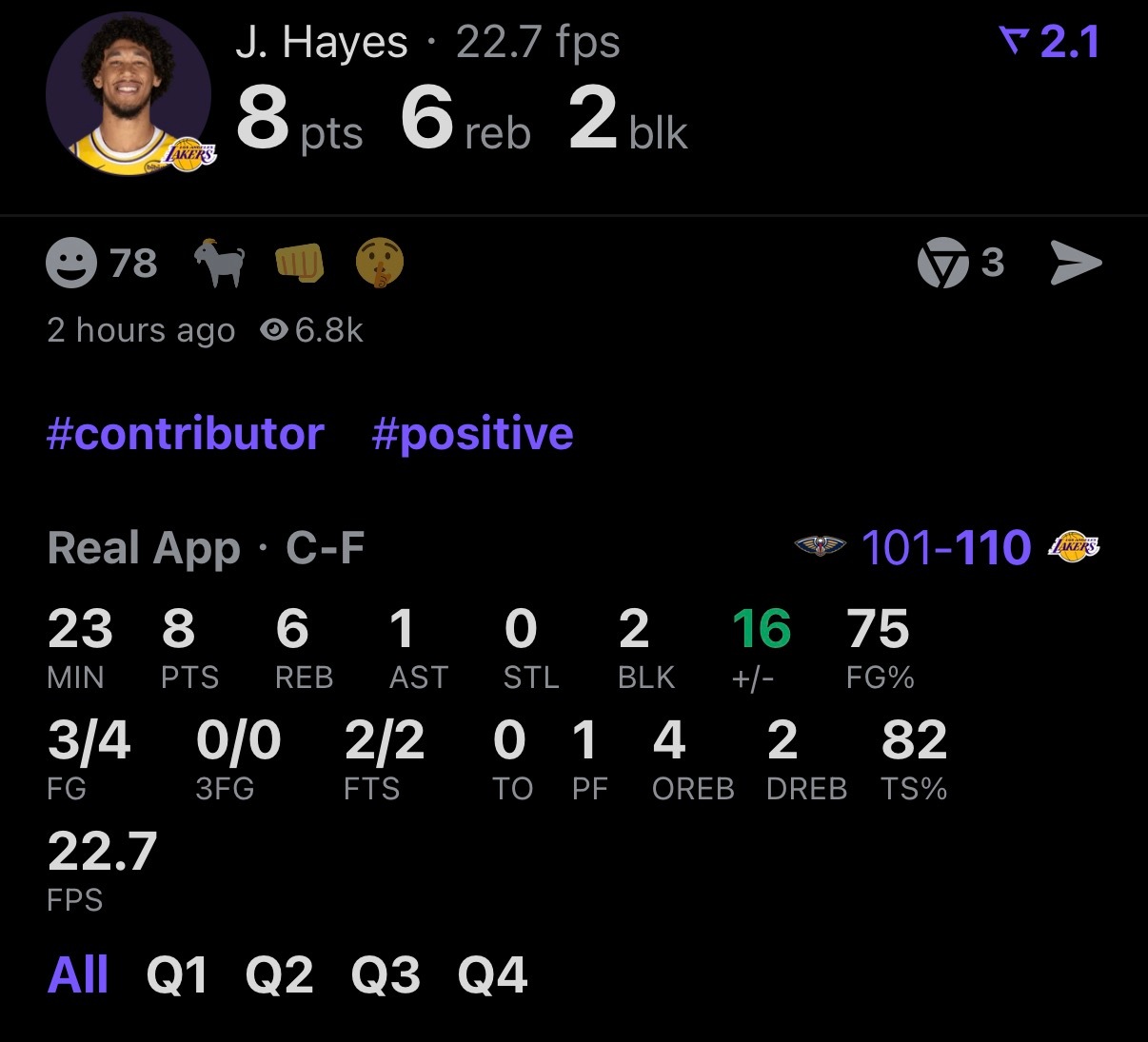 如何评价海斯本场比赛的表现?轻松拿下8分6篮板1助攻2封盖,正负值高达+16!鹈