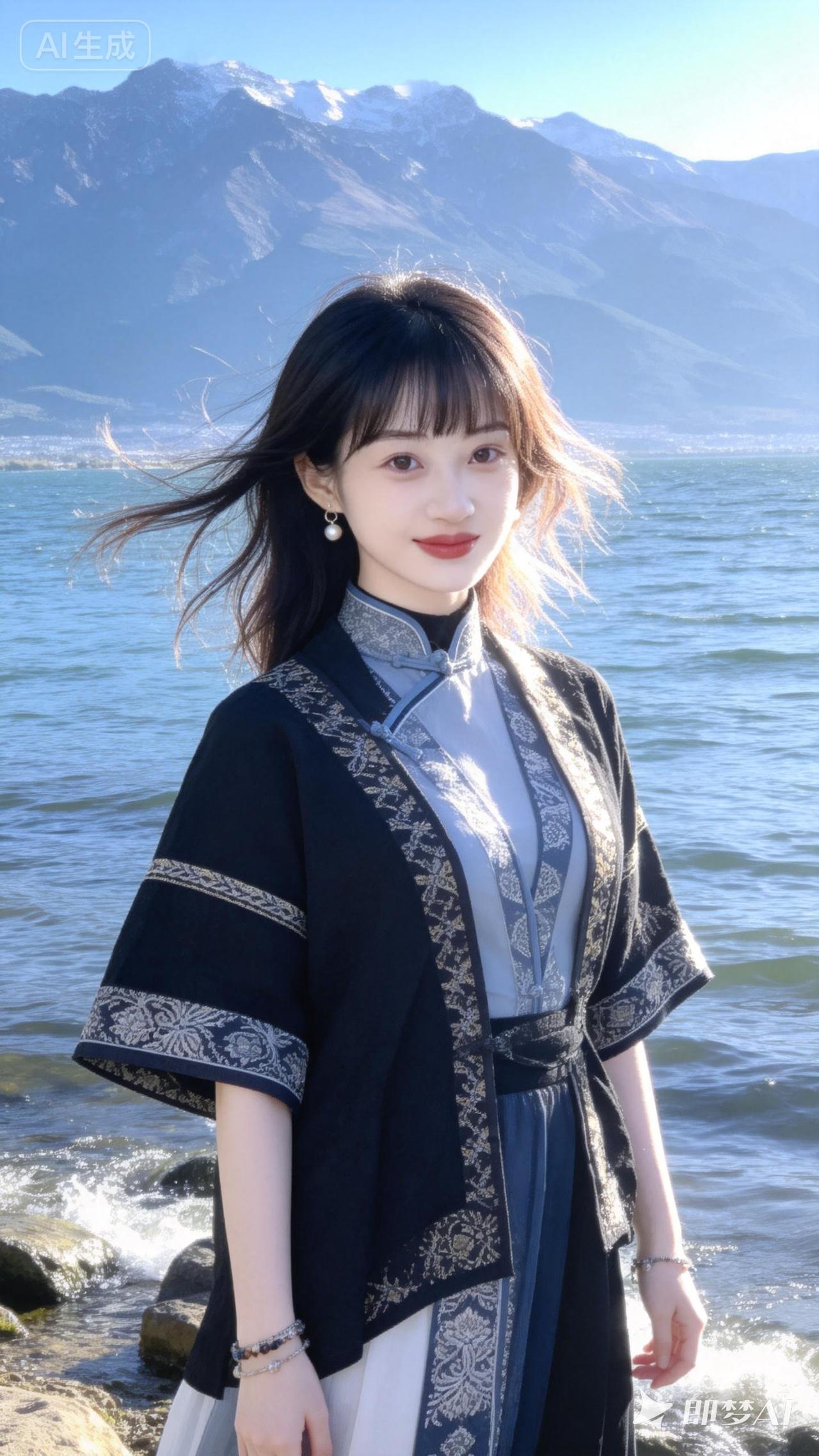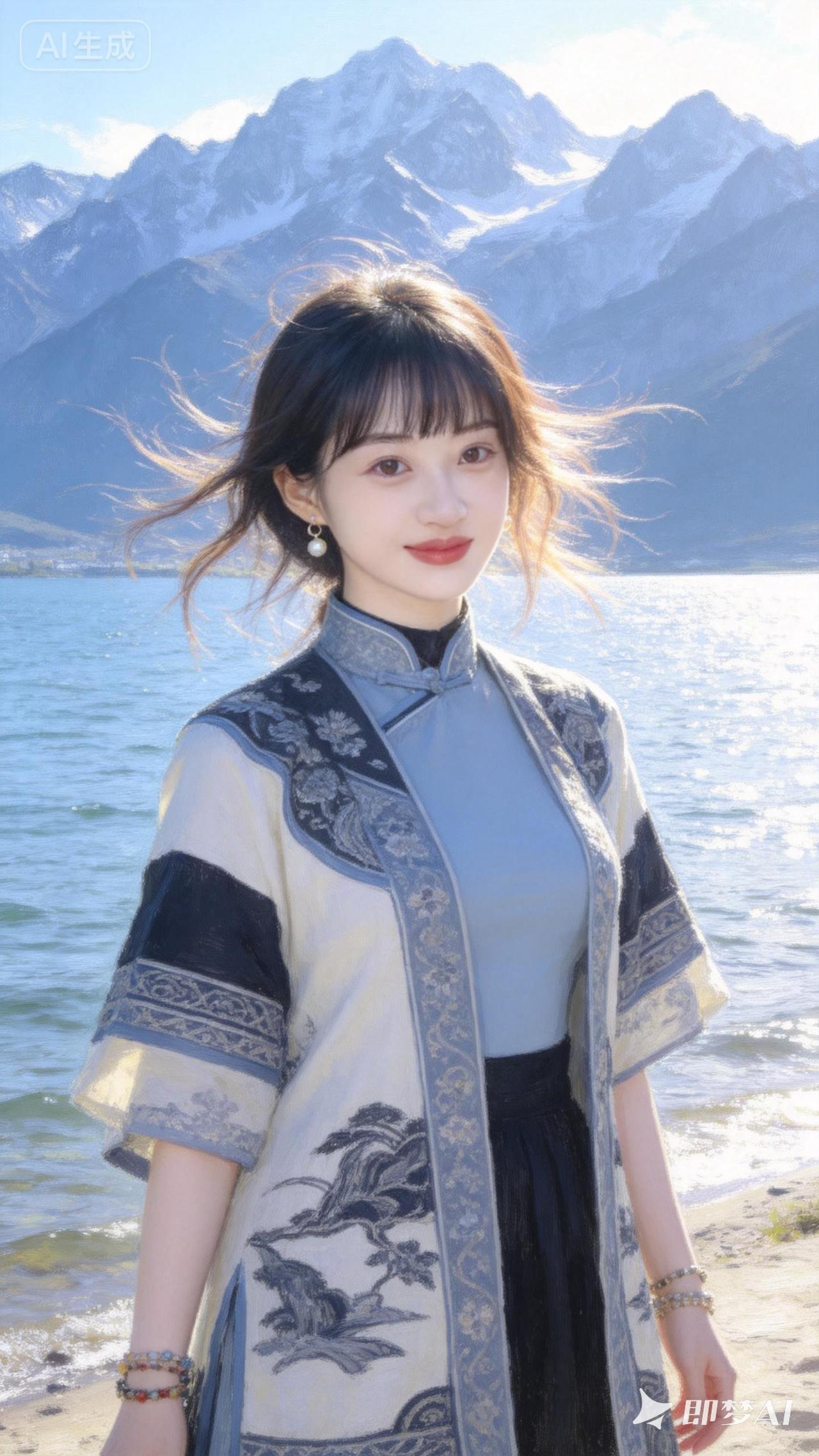 雪山湖畔的古典美人,风姿绰约,韵味十足。