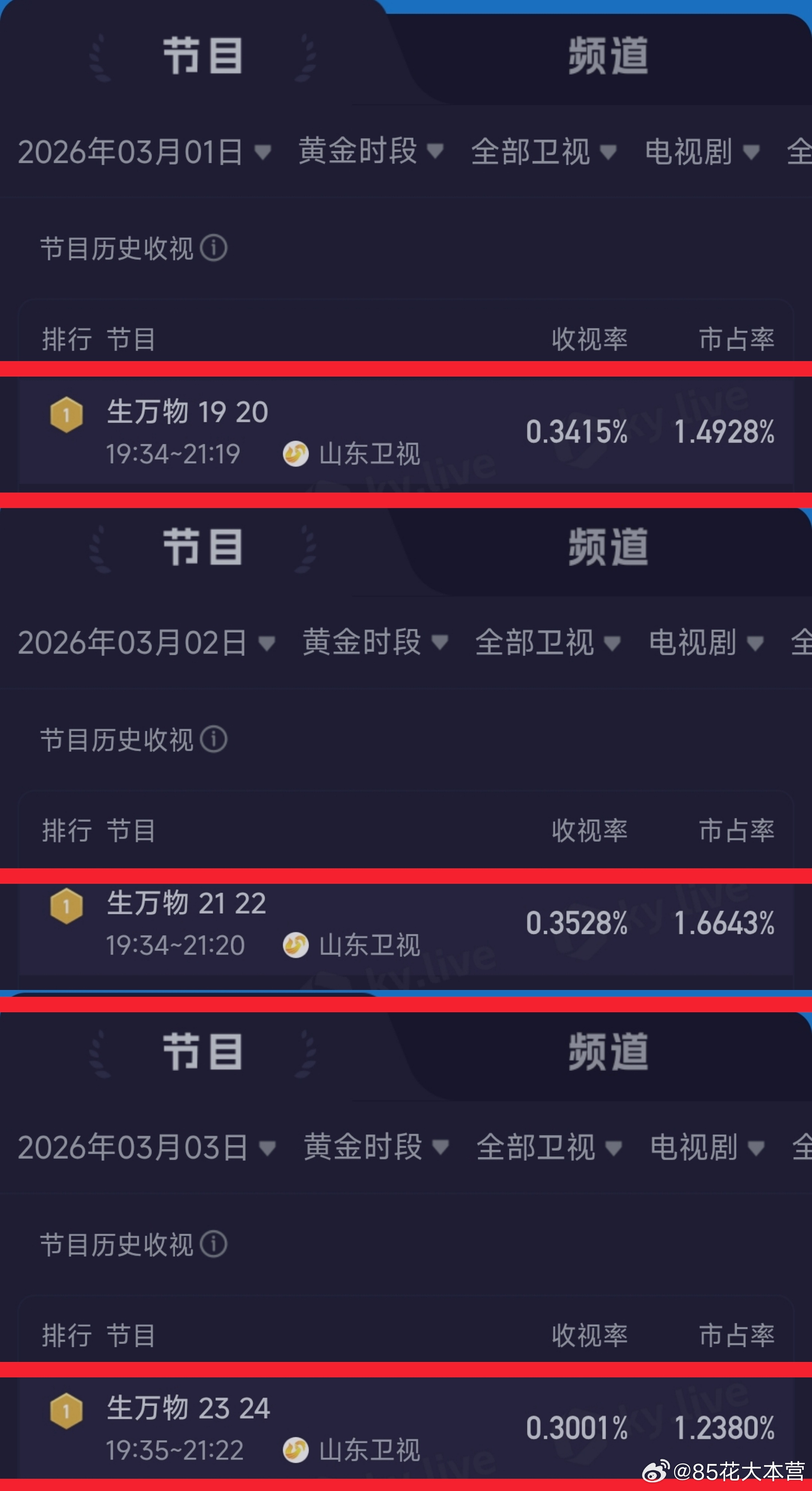 《生万物》一上星黄金档,也是轮到山东卫视当第一了