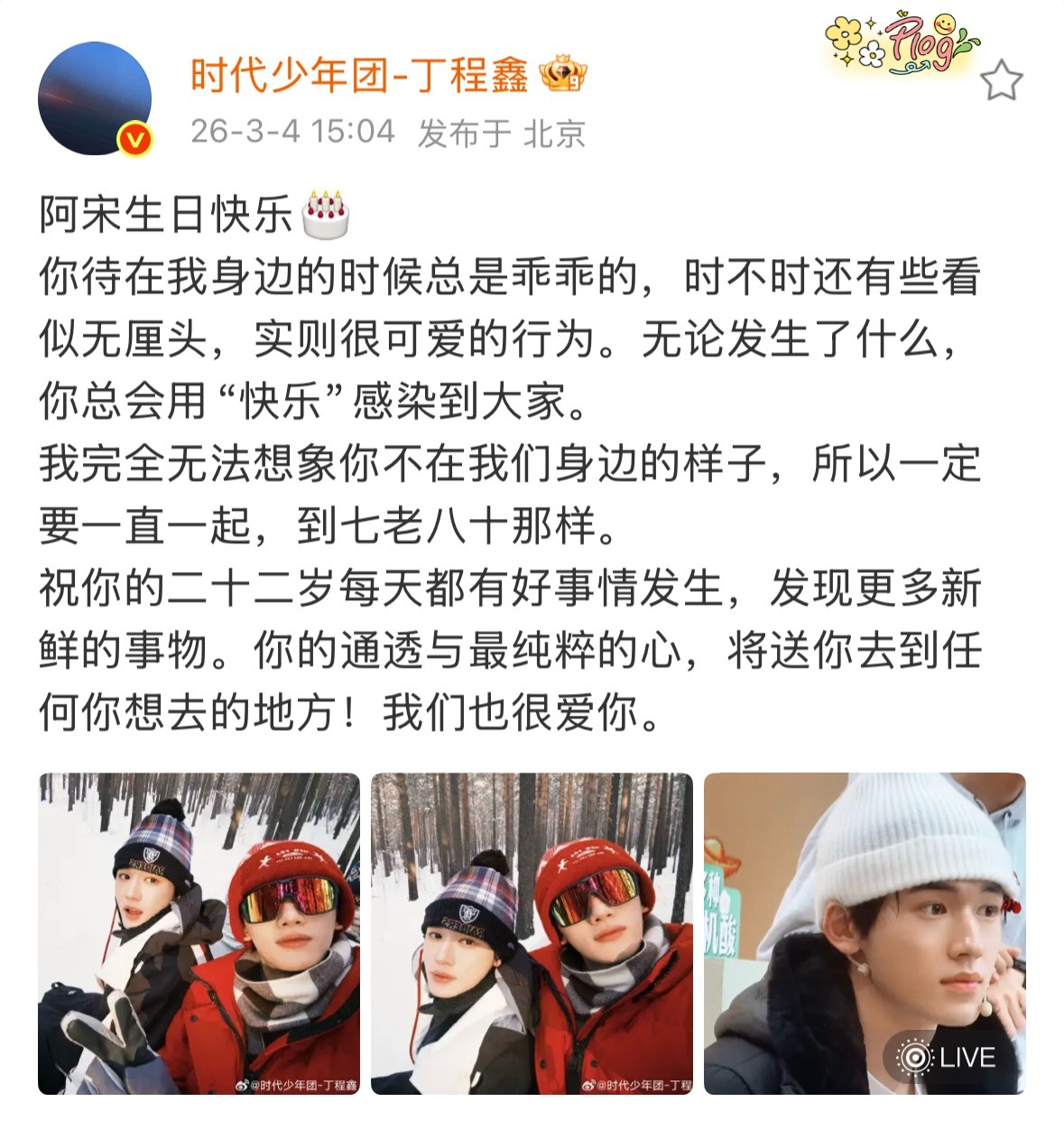 丁程鑫发滑雪合照为宋亚轩庆生时代少年团 我真的一整个爆哭丁程鑫发滑雪合照为宋亚轩庆生,祝“阿宋”22岁每天都有好事发生,还说一定要一直一起,我们时团一定要一直一起啊丁程鑫说一定要和宋亚轩一直一起丁程鑫祝宋亚轩22岁每天都有好事发生