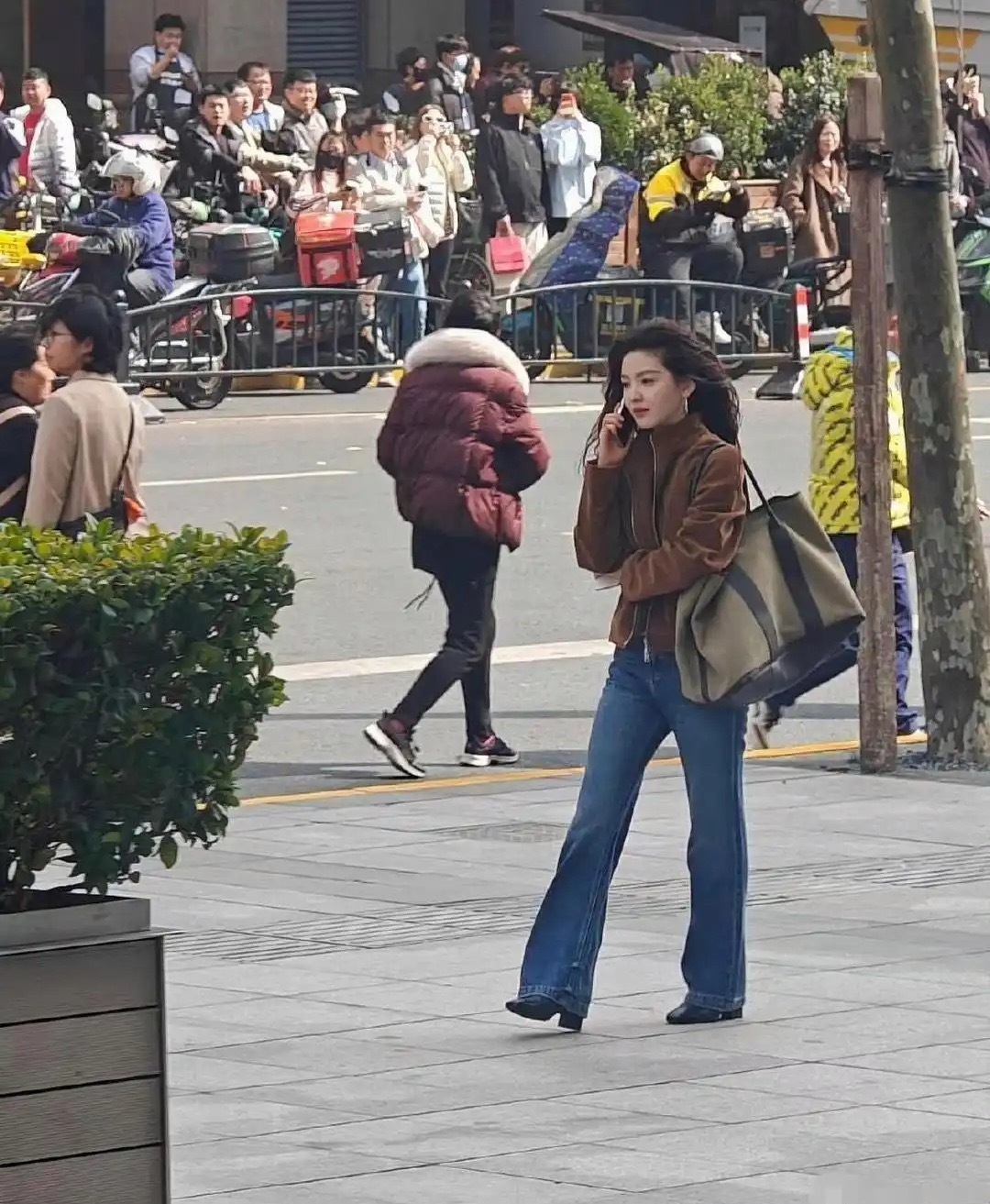 大马路上的章若楠竟然美成了这样,怪不得电视剧上那么好看
