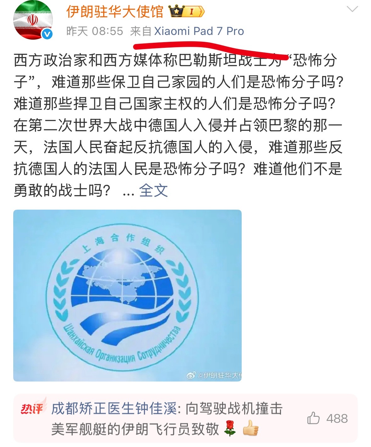 伊朗驻华大使,也使用小米的平板啊!安全!可靠!耐用!