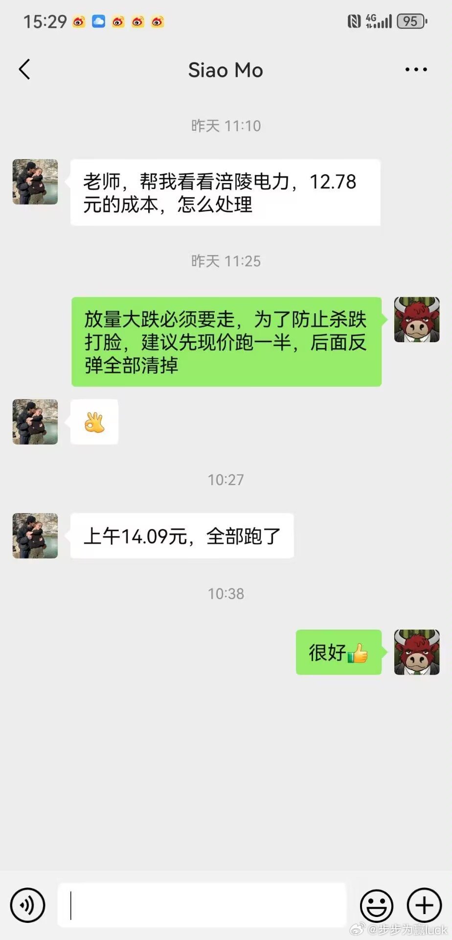 涪陵电力,离场的机会已经给了涪陵电力,昨天一位群友被突然的这个大阴线大的有点懵逼,确实在准备加速的阶段突然一脚刹车,搁谁都有点懵。涪陵电力的走势,缩量涨停带量下跌,极有可能是该股主力发现市场情况出现重大变化,中止操作计划的一种行为。昨天上午那位群友问我如何处理,我的回答是先走一半,后面有反弹全部出掉,今天群友回复我早盘拉伸的时候全部走掉了,其实人家也是赚钱的,只不过预期利润大幅的缩水。涪陵电力,14.61元大概率就是本次的最高点了,今天早上的快速拉伸就是给你最后的机会了。欢迎加入我们的免费交流群财经股票