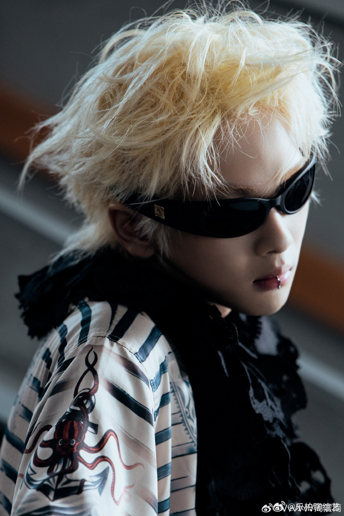 周震南戴墨镜适配度 周震南金发配墨镜真的是酷酷又帅帅的呀,完全就是被A到!和墨镜的适配度好高,太适合这种风格 周震南金发配墨镜