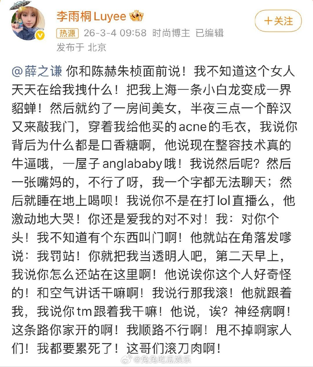 张杰前助理吐槽谢娜张杰张杰前助理吐槽张杰谢娜 张杰前助理也出来吐槽张杰谢娜了