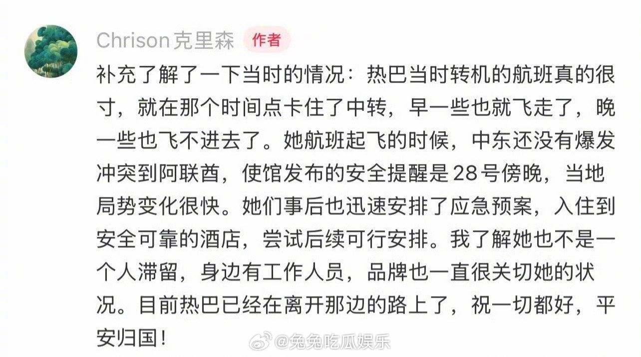 曝迪丽热巴或已落地马来西亚 时尚博主回复评论说据他所知热巴已经落地马来西亚,还是赶紧回国吧