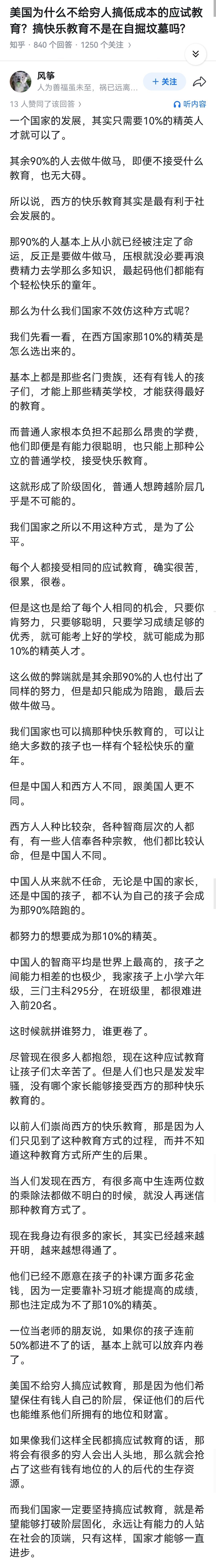 美国为什么不给穷人搞低成本的应试教育?搞快乐教育不是在自掘坟墓吗?