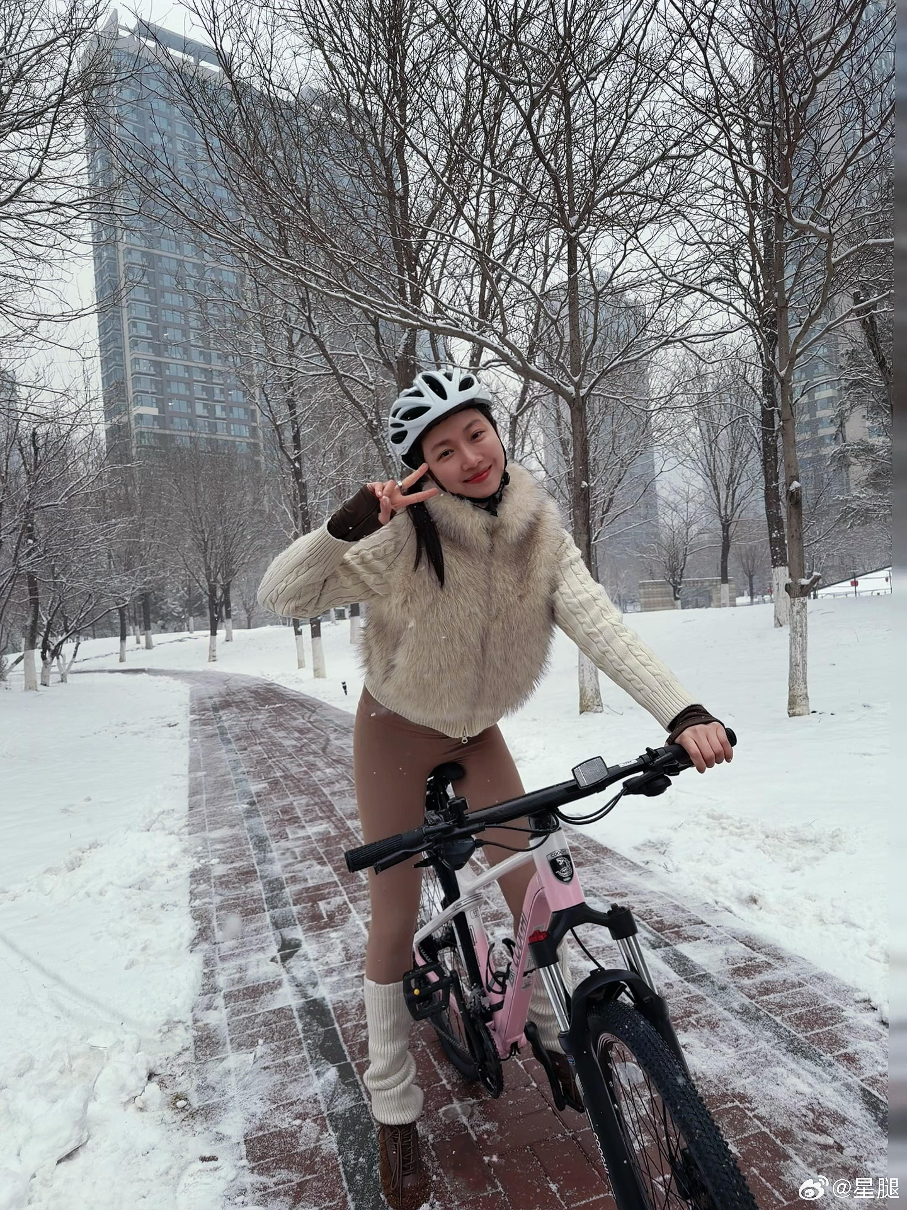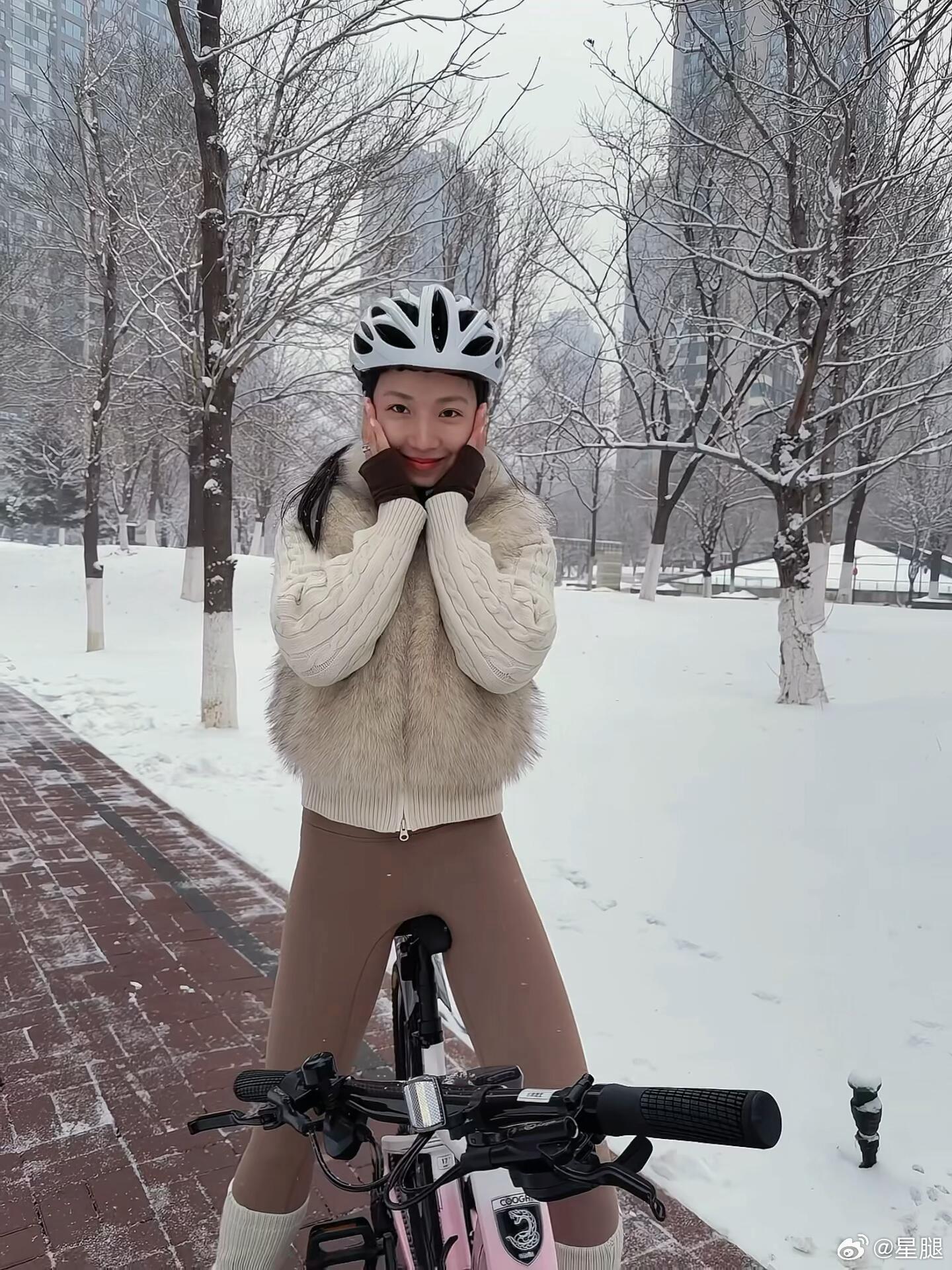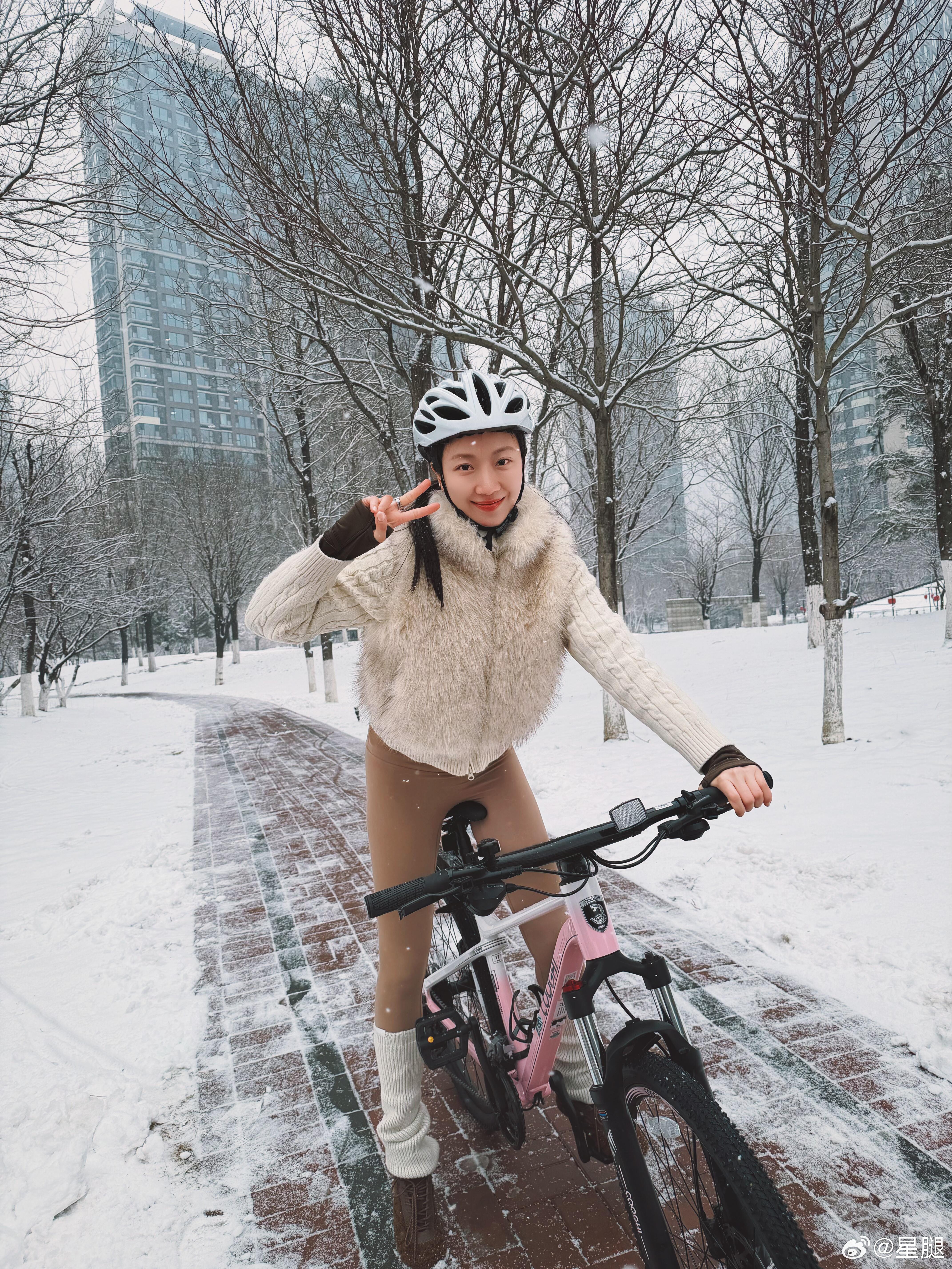 菅纫姿🚴🏻♀️雪中骑行