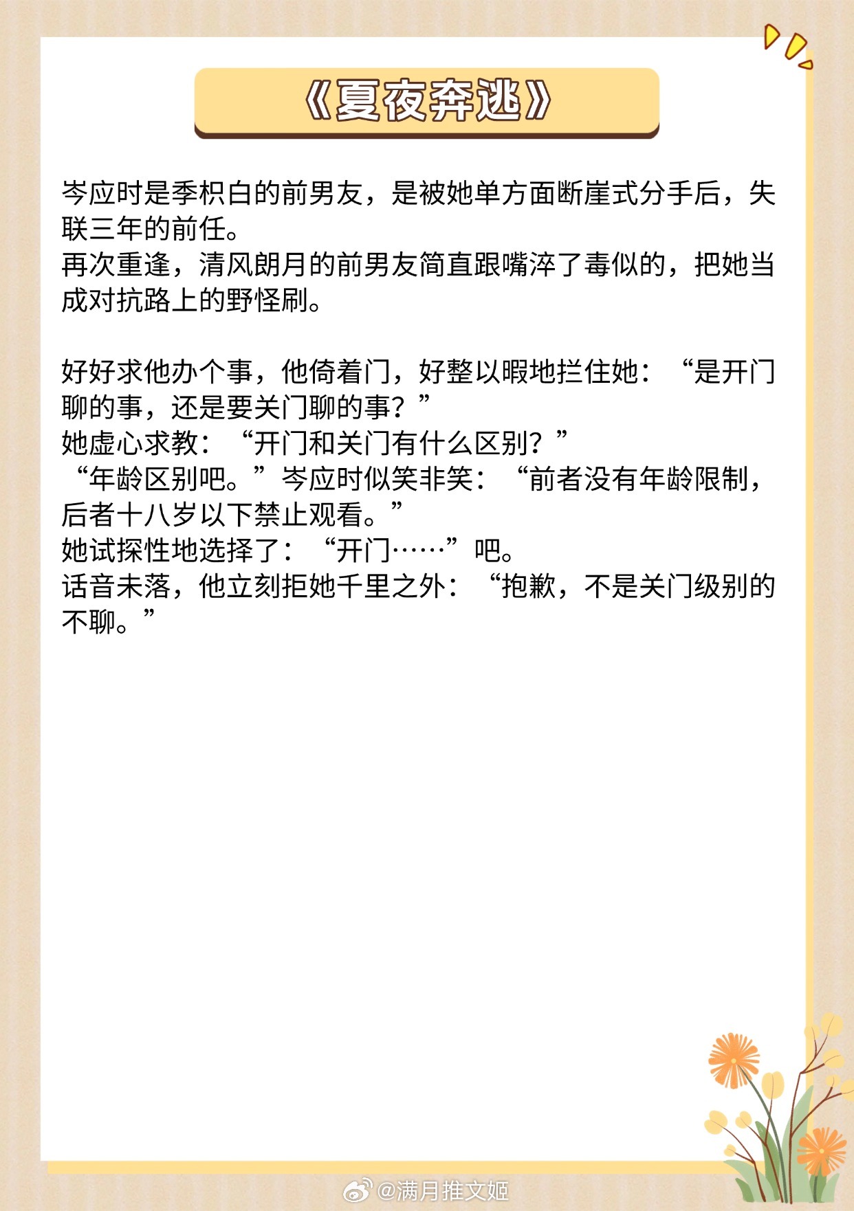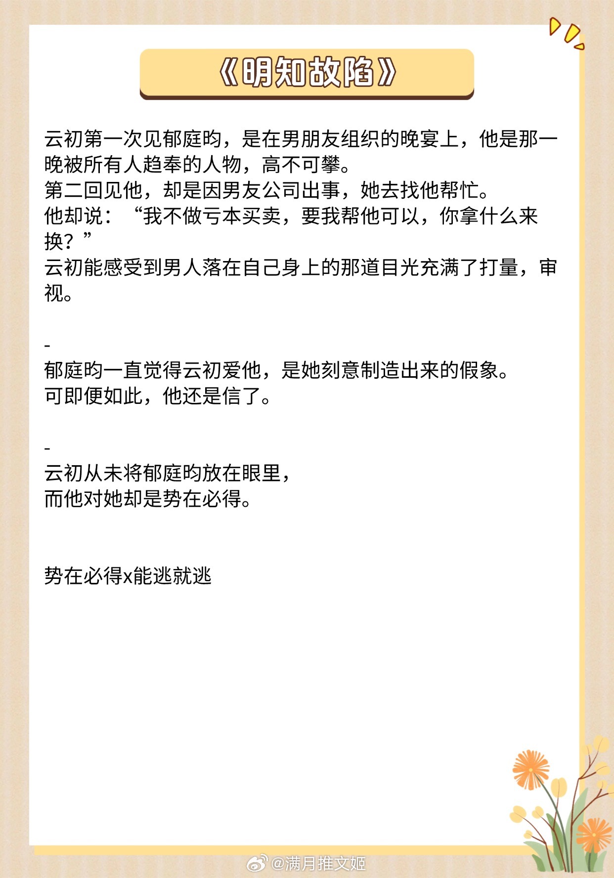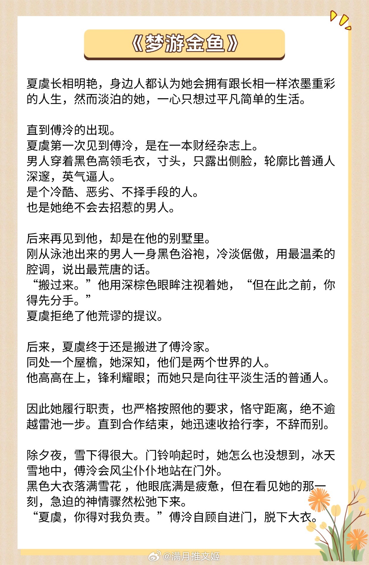 《月亮影子》作者:姜小黄《寒栀》作者:雾里青《明知故陷》作者:时星草《婚后余生》作者:一枚柚《夏夜奔逃》作者:北倾《失心小岛》作者:夏诺多吉《梦游金鱼》作者:陈以墨《再见玛格丽特》作者:叶小辛推文推文言情小说推荐