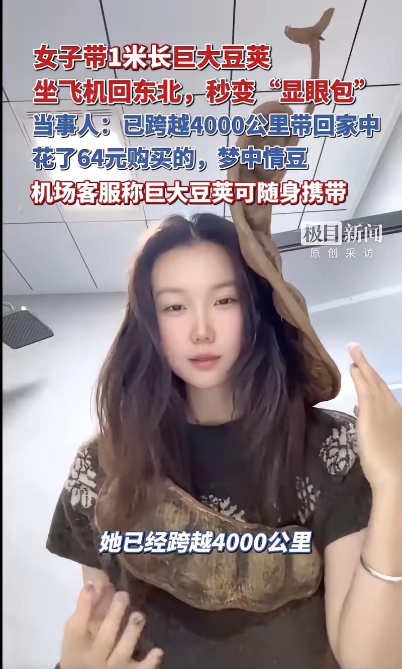 这是真牛!辽宁大连的陈女士最近彻底火了,她从云南花64块钱买了个一米多长的巨大豆荚,一路盘在肩膀上坐飞机、转机,跨越了整整4000多公里把它带回了东北老家,机场安检和路人全都看呆了,网友调侃:这哪是豆荚,这分明是盘了条“大蛇”在身上。 陈女士在云南普洱游玩时,无意间在当地市集看到了这个巨型豆荚,第一眼就被独特的外形吸引。这种豆荚学名榼藤,民间俗称过江龙,是我国已知体型最大的豆荚,成熟果荚长度普遍超过一米,晒干后质地坚硬、形态自然弯曲,在云南当地常被制作成特色家居摆件。她没有过多纠结,直接以64元的价格买下,折算下来单颗豆子仅4元,在她看来,这份天然的小众物件,远比流水线生产的旅游纪念品更有意义。 超长的尺寸让打包变得几乎不可能,托运又有破损风险,她很快想到一个办法,把豆荚盘绕在肩膀上携带,既能固定牢固,也不会占用过多公共空间。出发过安检前,她还担心不符合规定会被拦下,安检人员现场核查后确认,干燥处理的榼藤果荚不属于易燃易爆、管制器具等民航违禁品,也不具备植物繁殖能力,国内航班通行不存在检疫障碍,允许她随身携带登机。 从普洱起飞,在成都中转,最终抵达大连,全程四千多公里的行程里,这个巨型豆荚一直被她稳稳扛在肩上。机场通道内,路过的旅客纷纷投来好奇的目光,有人驻足打量,有人主动上前询问物品名称,还有人拿出手机记录这一罕见场景。没有人觉得这一行为带来不便,更多人被这份直白的喜爱打动,原本枯燥的转机旅途,因为这个特殊的“随行伙伴”多了不少趣味。 机场工作人员向媒体证实,干燥无异味、不具备繁殖能力的植物工艺摆件,在符合随身行李尺寸要求、不影响其他旅客的前提下,均可以正常携带。陈女士全程配合安检流程,登机后主动将豆荚放置在不影响客舱通行的位置,全程文明有序,这也是她能顺利完成长途旅程的重要前提。 相关视频在网络发布后,迅速引发大量网友关注与讨论。不少网友表示,这是见过最接地气、最有记忆点的旅游伴手礼,还有人被成功科普,认识了榼藤这种特色植物。大家纷纷感慨,以往出行总习惯购买高价商品定义旅行价值,陈女士的做法让人重新思考旅行的意义,真正的旅途纪念,从来与价格无关。 这件小事能快速走红,核心在于它还原了普通人最真实的生活热爱。没有刻意摆拍,没有商业炒作,只是因为喜欢,便愿意花费时间与精力,把一件小众物件从西南边陲带回东北老家。当下社会充斥着消费主义包装的旅行观念,人们被攻略与网红商品裹挟,渐渐忘记旅行本身的快乐,来自生活本身的朴素乐趣,反而更能引发大众共鸣。 民航安检的人性化处置,也让网友感受到规则之外的温度。安全是出行的第一准则,合理的个性化需求同样会被尊重,只要不违反规定、不影响他人,普通旅客的小爱好、小坚持,都能被包容与理解。这样的处置方式,守住了安全底线,也保留了生活应有的烟火气。 陈女士已经把这个跨越千里的豆荚安置在家中,作为专属旅行摆件。它没有昂贵的价值,却承载着四千公里的旅途记忆,藏着最纯粹的热爱与真诚。生活的美好往往藏在这些小事里,不被世俗标准束缚,遵从内心的喜好,把平凡日子过得鲜活有趣,就是最动人的生活状态。 各位读者你们怎么看?欢迎在评论区讨论。