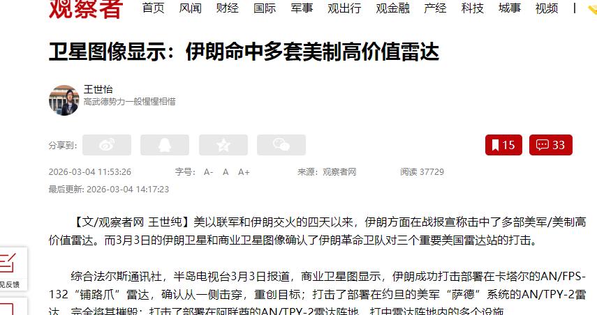 炸了、炸了、真的又炸了!铺路爪被摧毁 前两天部署在卡塔尔的AN/FPS-132相控阵雷达被伊朗无人机摧毁,目前通过惊人卫星图像确认战果。 伊朗“诚实承诺4号”行动的这一出手,直接重塑了中东战略平衡。 过去大家都觉得美国的全球雷达预警系统“铜墙铁壁”,但谁能想到,成本不过小轿车价的钱就能把价值过百亿人民币的超级雷达给打废。 高科技遇到低成本突防,这真是军事圈永远的未解难题。 今天不讲复杂原理,带大家全流程梳理一下这场硬核输出的背后到底有哪些信息值得琢磨。 加一句,不要小看自己,世界就是这样变的,所有设备最怕的不是对手太强,而是思维被固化,看不到新变化。 先聊聊“铺路爪”吧,这可不是普通军事装备,卡塔尔买的这台AN/FPS-132,相控阵结构,2013年购入,价格直接飙到11亿美元,光看数字,脑子都得转几圈。 雷达有多牛?用最直白的话说,就是它能盯着几千公里外的目标,一旦有导弹起飞或者太空器活动,几十秒内就能算准轨迹,提前半小时就能提醒萨德、爱国者等整个中东战略反导网。 甚至对轨道上成千上万个目标都能实施跟踪,是美国全球太空监视系统的眼睛,大部分国家梦寐以求都求不来的战略资产。 关键是这种雷达,全世界也就只部署了六套,失一个少一个,美军自己在中东就靠这台总台撑门面,这不是普通意义上的装备,而是战略神器。 那伊朗下手怎么就瞄准了这里?这次“诚实承诺4号”是伊朗为报复美以持续对伊朗进行的军事施压、暗杀和基础设施打击,做出的全局反击。 这类行动不关注面子要数据,能用一万个手段优雅反击,它绝不会选第10001个。 “铺路爪”被锁定,直接削弱美国在波斯湾以至整个中亚、南亚区域的预警能力。 卫星图传出来明明白白,雷达阵面当场被切,碎片撒满,现场还有消防水冲刷痕迹,是真正毁伤,不是虚晃一枪。 老美自己心里最清楚,这一刀砍在了命门。 过去中东反导网之所以不怕突然袭击,就是因为有AN/FPS-132顶门镇场,它那超远5500公里的探测圈,可以全面覆盖伊朗、阿富汗、巴基斯坦和印度西线,全息盯防弹道导弹突发射与太空目标活动,留给洲际拦截和系统反应30分钟黄金窗口。 这种战略级别的平台,从设计到运抵现场、再到组网调校,正常流程都得1-2年,更别说生产周期了。 而且它的核心器件大量依赖稀土材料和高端磁性元件,这里面美国还不是绝对老大。 其实美方缺稀土不是秘密,全产业链里,尤其是高端稀土的提纯和封装,离了我国和几个技术强国,根本玩不转。 你即便把钱烧进锅里,没资源配不出来。这也就是为什么雷达被毁之后美军紧张加倍,根本不是能很快拉一台新设备填补的事。 看大局意义,这玩意儿被做掉带来的不是简单的经济损失,更是美国中东反导体系像被掏了个大洞。 没了卡塔尔这台“铺路爪”,美军对中东核心地带的弹道导弹预警和太空监控基本减半,整个反导系统响应、识别和拦截时间大幅下降,所有战区部署的萨德和爱国者拦截组反应会慢拍、紧张加倍。 公开数据显示,AN/FPS-132平均峰值功率高达582千瓦,三面有源相控阵天线,可360度全覆盖,这不是普通海基宙斯盾能比的。 美伊之间、乃至美以之间的战略博弈天平,短期内已经出现微妙平衡松动,过去觉得美国牢不可破的中东反导伞,居然也能被低成本无人机撕出来口子。 说实话,现代战争最怕的就是高大上防御体系对突发新手段反应迟钝,整个中东反导圈的神话一夜之间完全不一样了。 再看成本账,简直想不到的极致对比。 这台雷达造价11亿美元,按现在汇率,加上通胀和技术升级,实际价值早就在百亿人民币往上走。 而伊朗用的,却只是一架约一万美元的国产无人机。 网上估算,一万美金足够买个家用车,还不到炮弹火箭的价格,结果正面冲破战略级雷达面板,实现精准定点毁伤。 我们网友常说,“用十块钱以一百亿”,现实版出现在这里。 这种效果,伊朗一次精准打击,直接让美国数年投入归零,战术收益和战略威慑双赢。 顺便聊聊这个所谓的“无人机终结高端武器”现象。 近年来,从俄乌冲突到中东再到不少军事热区,类似案例越来越多。 高成本、慢节奏、极端依赖供应链的超级防护体系,是真经不怕火吗? 大家都看明白了,现在的无人机、蜂群突防、廉价制导弹药越来越难以防御,高价值装备只要暴露在可能被摧毁的环境下,就等于把自己的短板递给了对手。 尤其像“铺路爪”这种大型固定阵列,很难应对灵活、快速、无人操控的多面进攻。 有人说,未来战争就是“低端打败高端”,其实不是绝对的技术鄙视链,而是对战法创新和体系联动的考验。 伊朗这次,就是典型的以小博大、后发制胜。 参考: 观察者网——卫星图像显示:伊朗命中多套美制高价值雷达