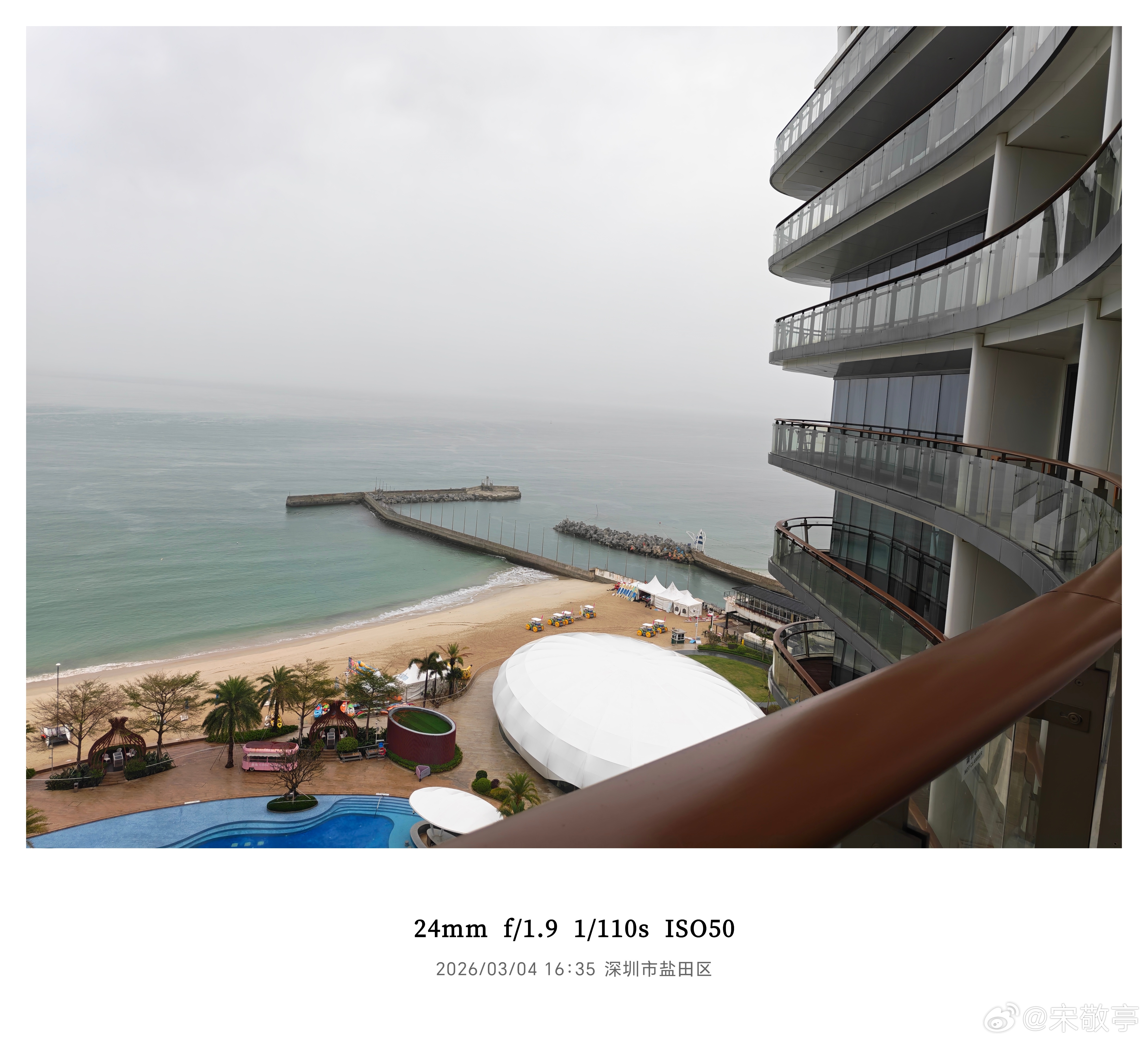 深圳竟然下起了小雨,不过大梅沙海景还是不错的,酒店的床上直接能看到海~ 深圳·深