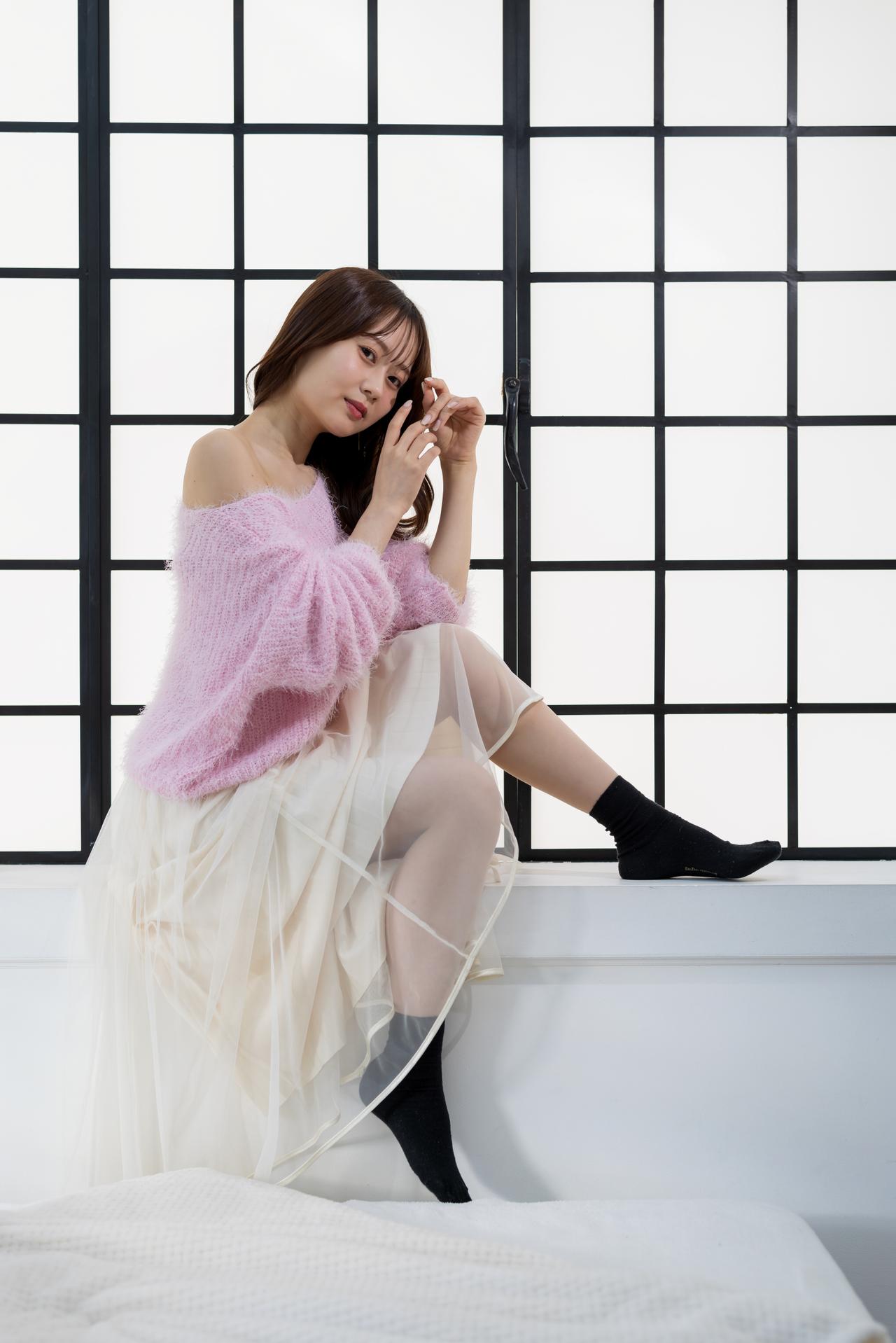 粉嫩毛衣搭配飘逸长裙,甜美少女风,窗边自拍,温柔动人。