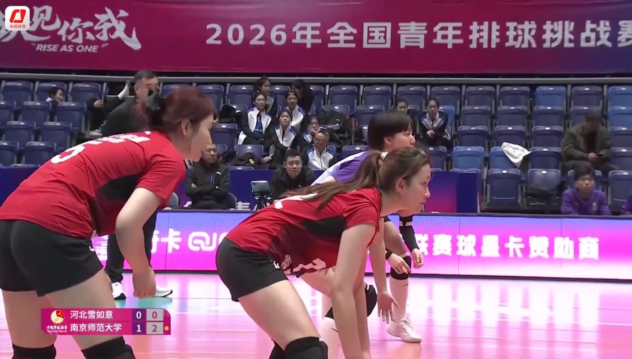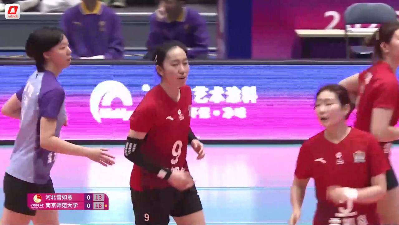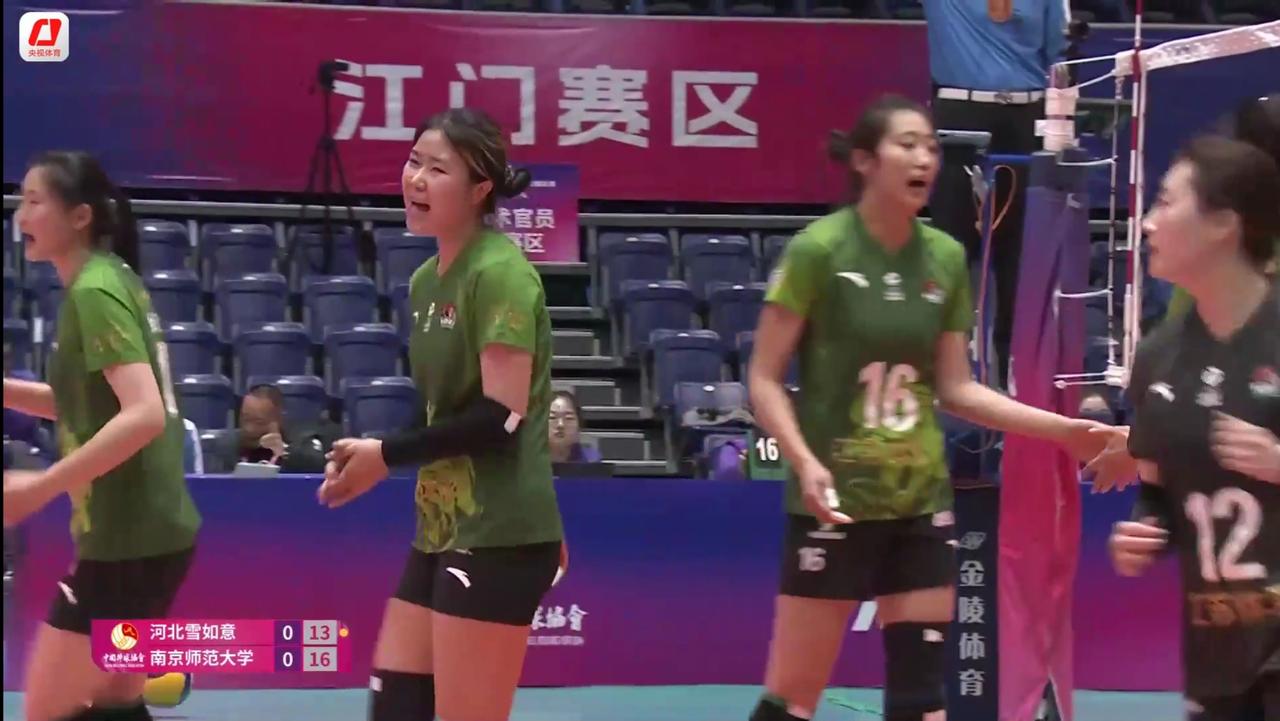 【青年女排挑战赛】河北——南京师范 实时战况: 3月4日下午17:00时,全青女排挑战赛第二阶段,河北——南京师范的比赛打响。第—局开始,9:11,南京师范领先!9:12,10:12,10:13,10:14,11:14,南师大领先。12:14,12:15,12:16,河北暂停。14:18,14:19,15:19,15:20,南师大领先。15:21,姚欣悦。16:21,河北得分。16:22,戴思聪。16:23,16:22,17:24,18:24,18:25,南师大胜第一局,大比分1:0,南师大领先! 第二局比赛正在进行中……