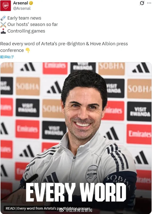 阿尔特塔出席了赛前新闻发布会,我们简单看看相关内容。阿森纳