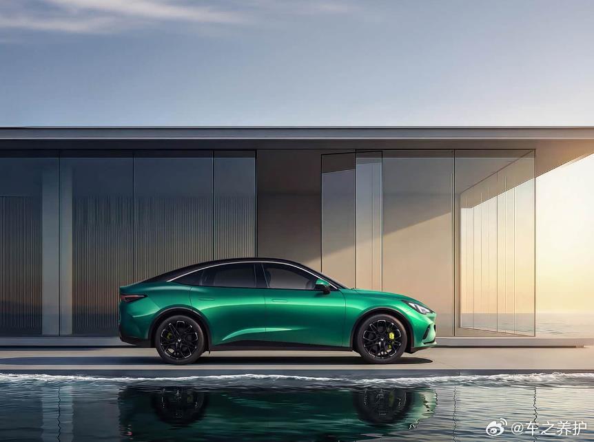 车身侧面,它搭载了无边框车门和艳色卡钳,配合宽体低趴的车身姿态,运动感和时尚性相当出色。车身尾部的线条较富层次感,贯穿式的尾灯横贯中部,尾盖上还搭载了面积达3430cm²的智能主动升降尾翼,时速超90km/h自动开启,看着很是炫酷。