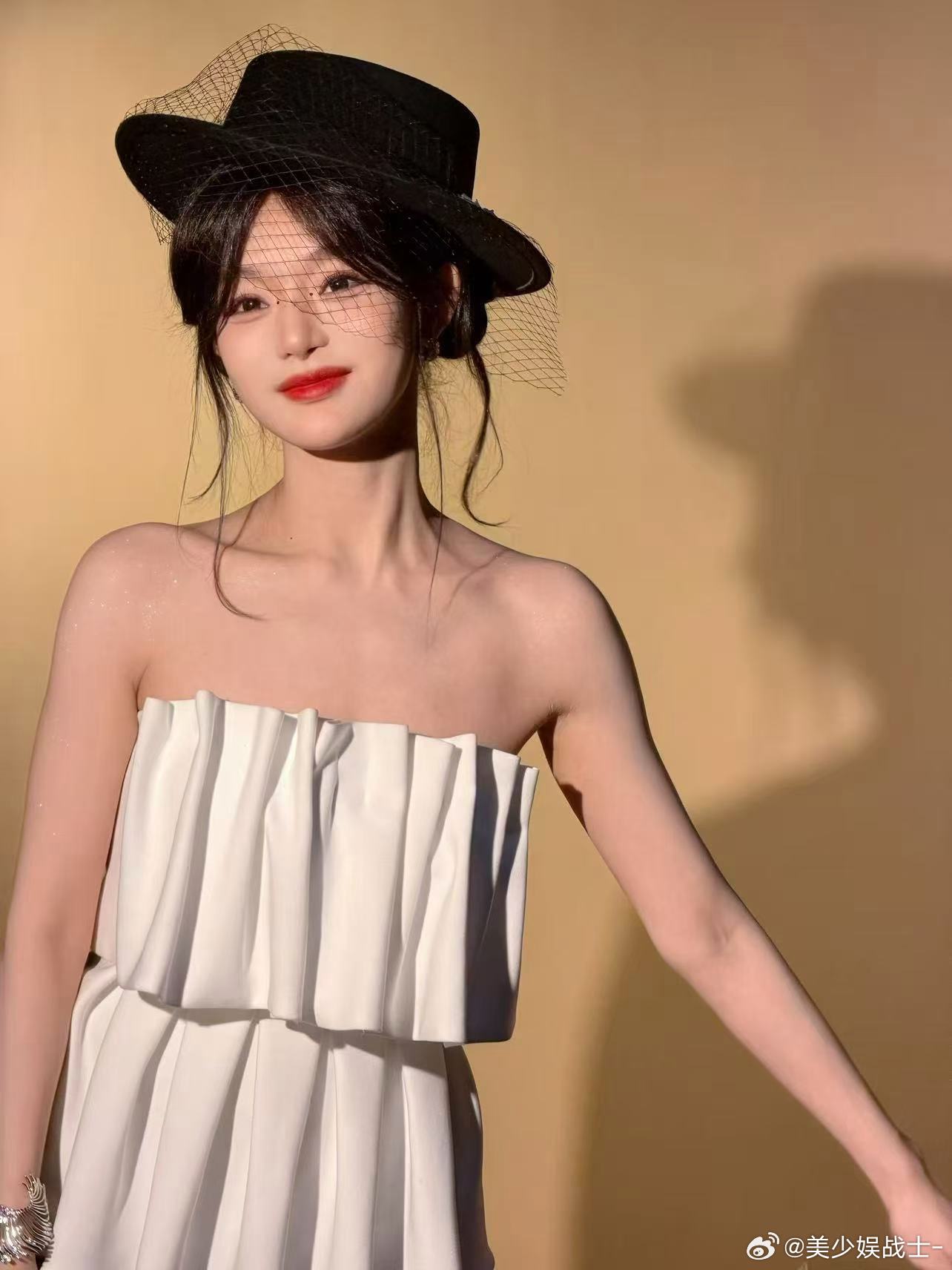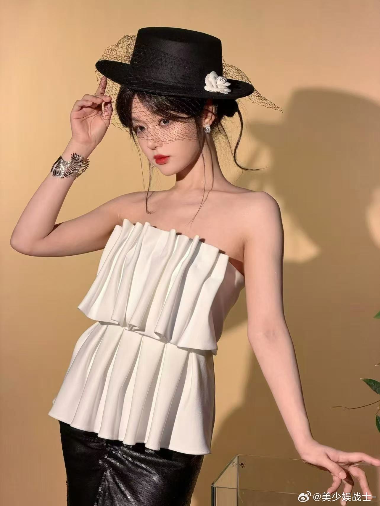 李一桐木格窗漏进的月光把亮片裙织成流动的河她斜倚在朱红的栏上发梢垂落,像