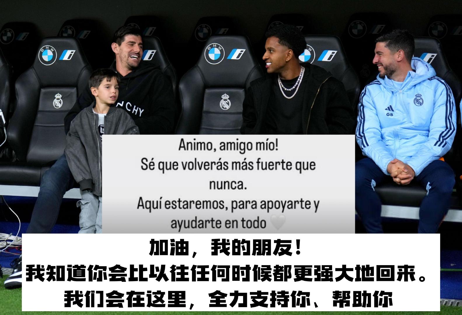 库尔图瓦:“加油,我的朋友!我知道你会比以往任何时候都更强大地回来。我们会在这里,全力支持你、帮助你。”