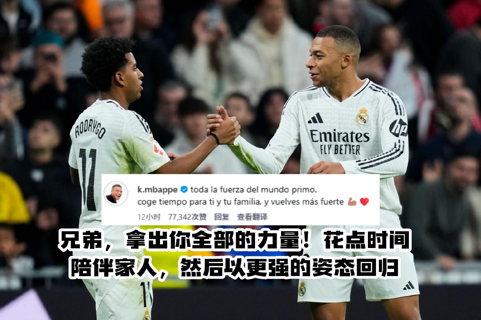 姆巴佩:“兄弟,拿出你全部的力量!花点时间陪伴家人,然后以更强的姿态回归。”