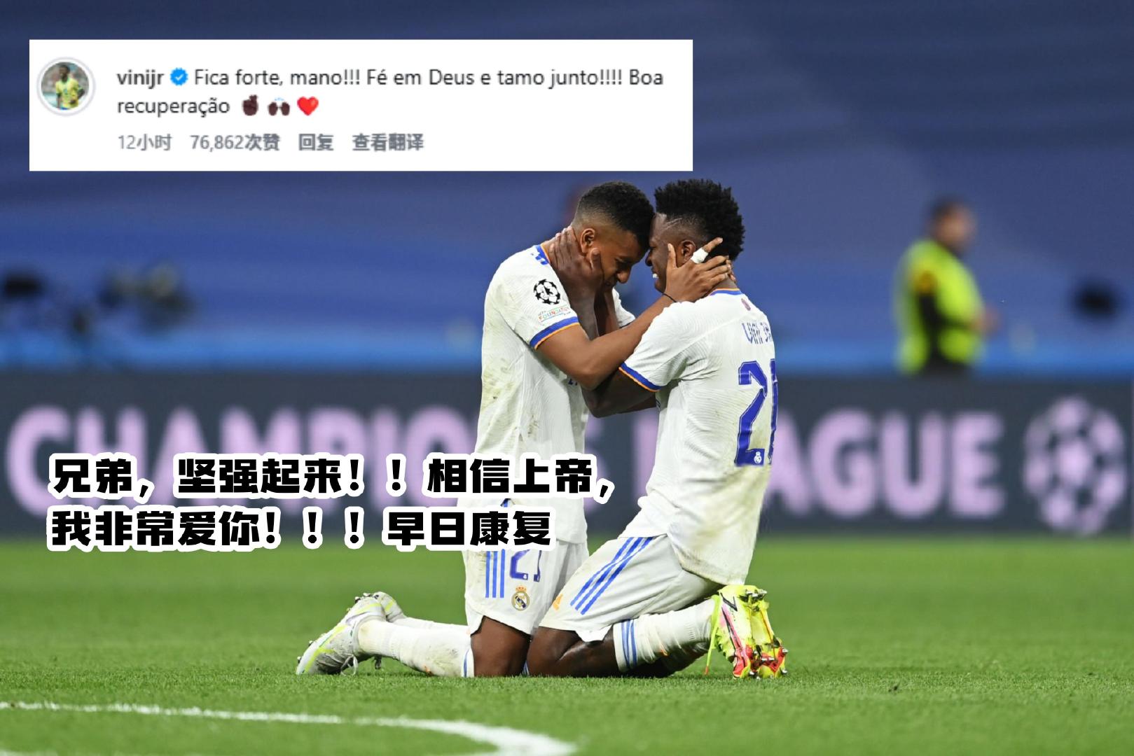 威尼修斯:“兄弟,坚强起来!!相信上帝,我非常爱你!!!早日康复!”