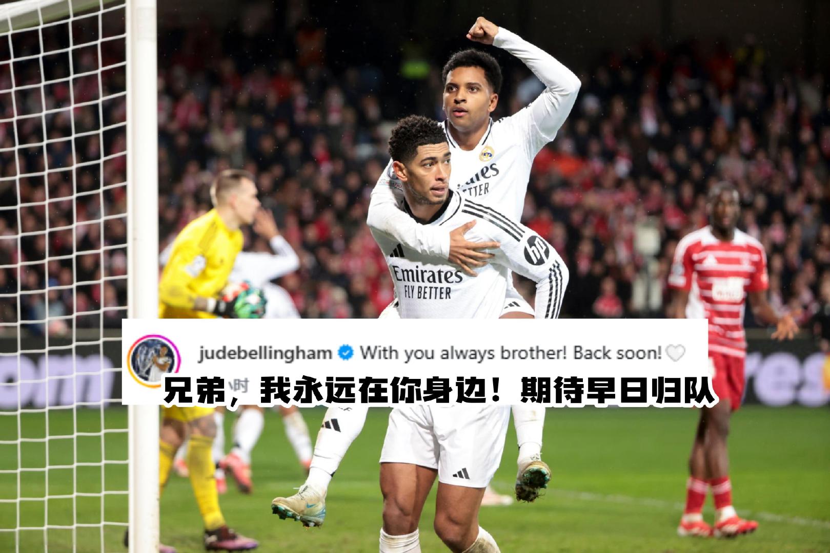 贝林厄姆:“兄弟,我永远在你身边!期待早日归队!”