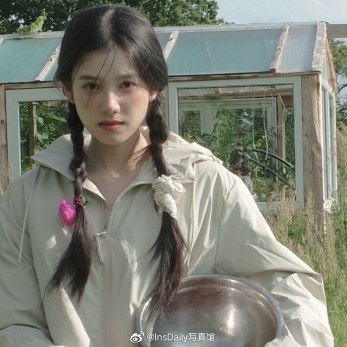 孔雪儿麻花辫少女:一袭黑白色调长裙,光影浮动,动人摄魄。孔雪儿