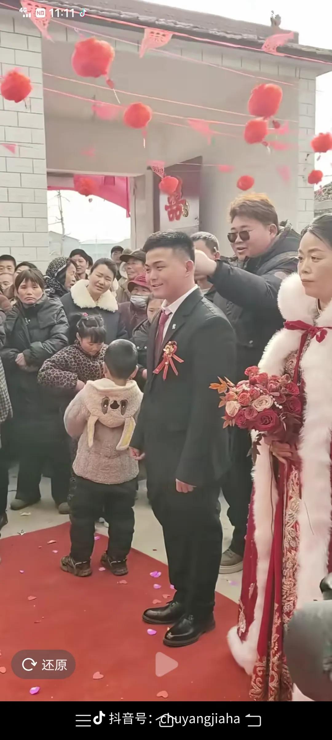 小伙子终于娶上了老婆,开心的不得了。 看表情新娘还不太满意。