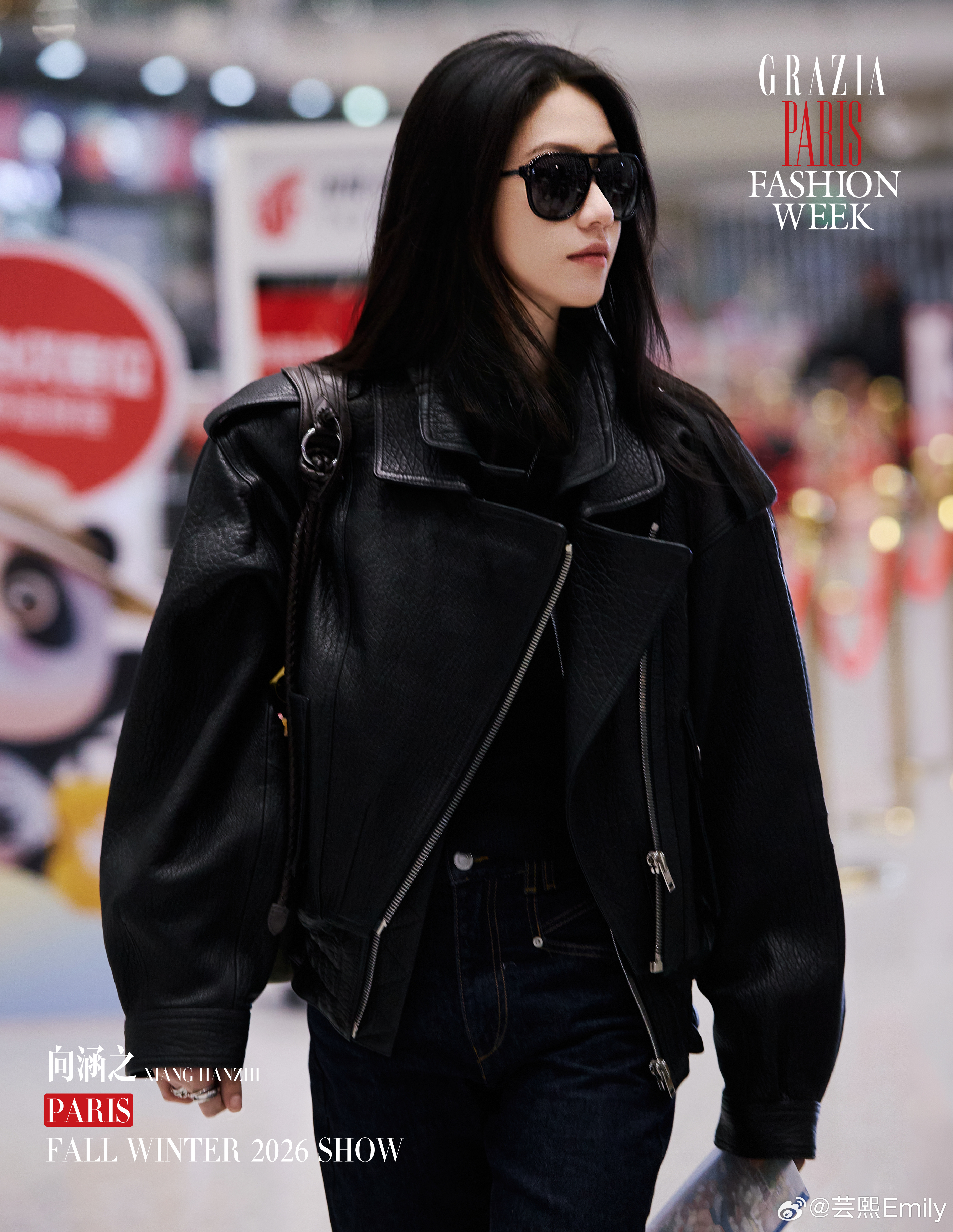 红秀向涵之巴黎时装周向涵之启程巴黎时装周,以一身oversize皮衣搭配阔腿裤和墨镜的All black造型亮相,又酷又飒!期待巴黎时装周大秀前排!时装周巴黎时装周