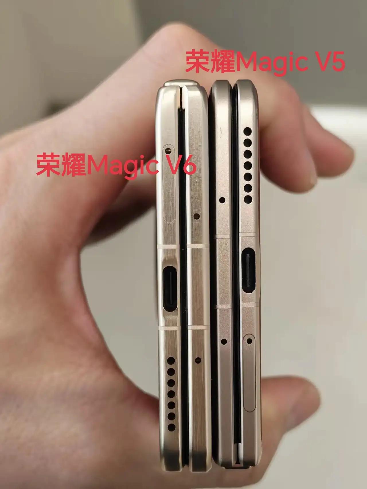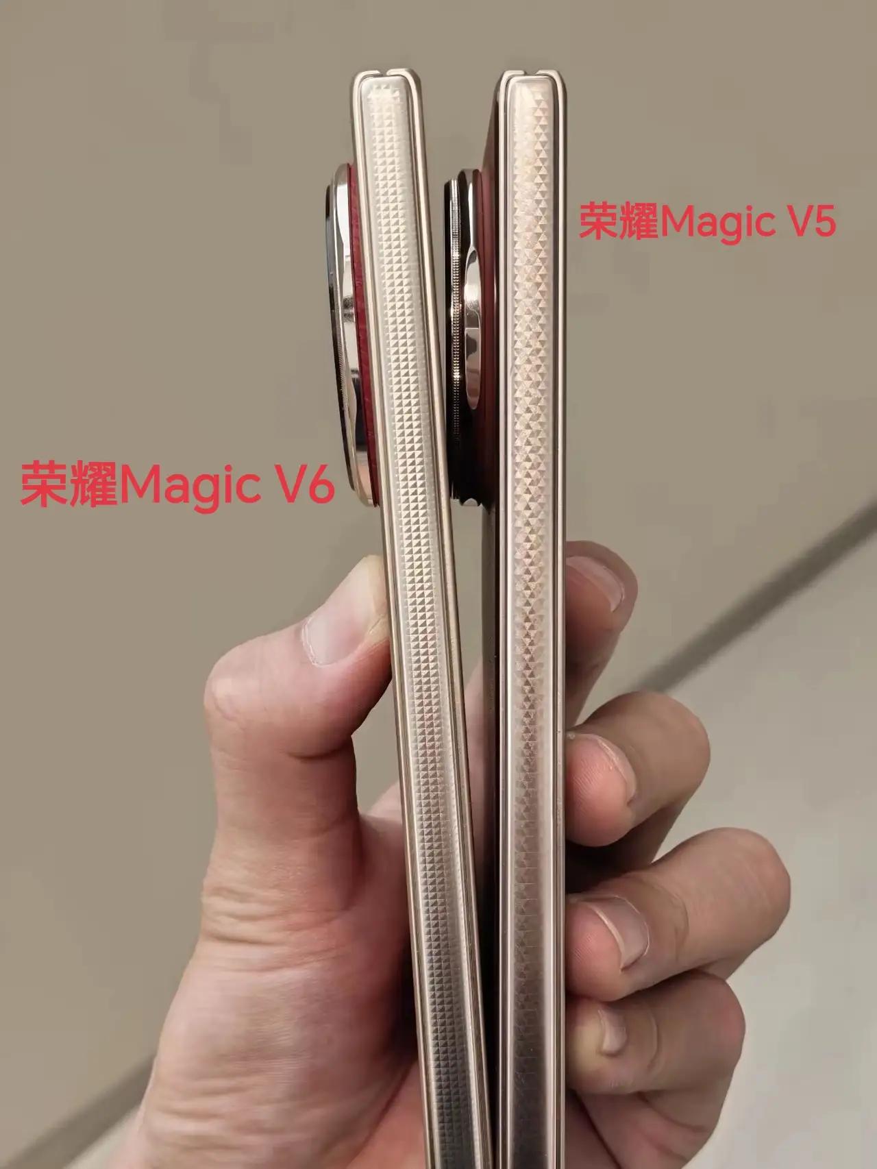 把荣耀Magic V6和V5放一起对比,外观几乎一模一样,不仔细看根本分不出来。 摄像头布局、边框、整体设计都差不多,升级全在里面。 - 芯片升级:满血第五代骁龙8至尊版 - 内屏升级:UTG超薄柔性玻璃 - 主摄升级:2亿像素 - 电池升级:7150mAh 而且大概率加量不加价,还是8999元起。 花这个价钱买这台折叠屏,大家觉得值吗?