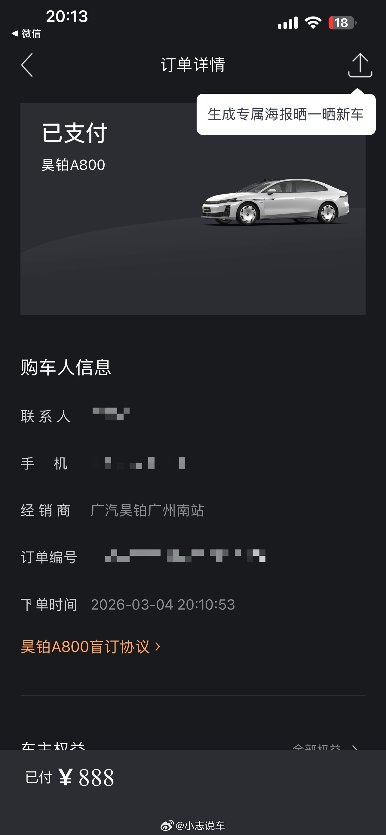 广汽昊铂a800 这价格真可以啊~18万起(置换补贴价16.48万元—27.48万元)但是想体验下高配 选完目前是299800+3000二排小桌板。这豪华感是真的很强~搭载华为乾崑智驾ADS 4.1和鸿蒙座舱5,简直就是小尊界800了三分之一S800