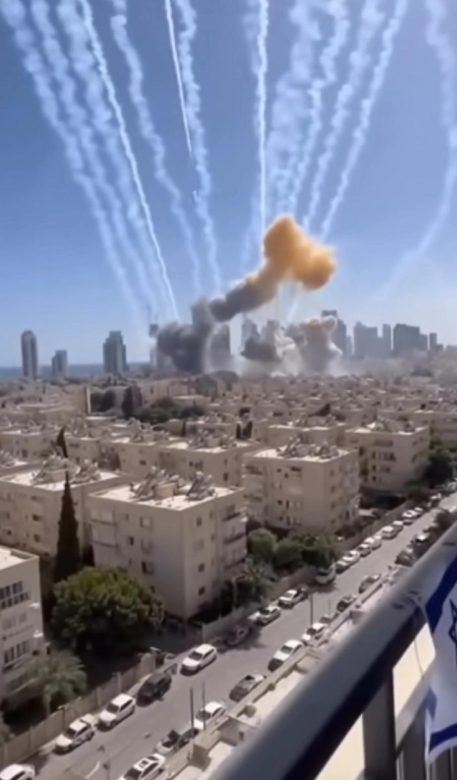 以色列的特拉维夫城市里面的一个目标,被伊朗的一枚集束导弹子母弹反复轰炸,看样子这里有非常重要的军事目标。 这也表明以色列的防空系统 在这种饱和的攻击性应该是没有什么作用啦。