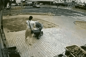 这个女子一定不是孩子的妈妈,妈妈不会遇到危险自己躲开了,把孩子置于危险当中的。 这个女子手里拿着一束花,遇到危险的时候,手里的花都没舍得扔掉,直接放弃了婴儿车,还用手捂着脸,倒退了好几步。 过后她一手拿着那束花,一手推着婴儿车后退,像这样花和脸都比孩子重要的女人一定不是孩子的妈妈。