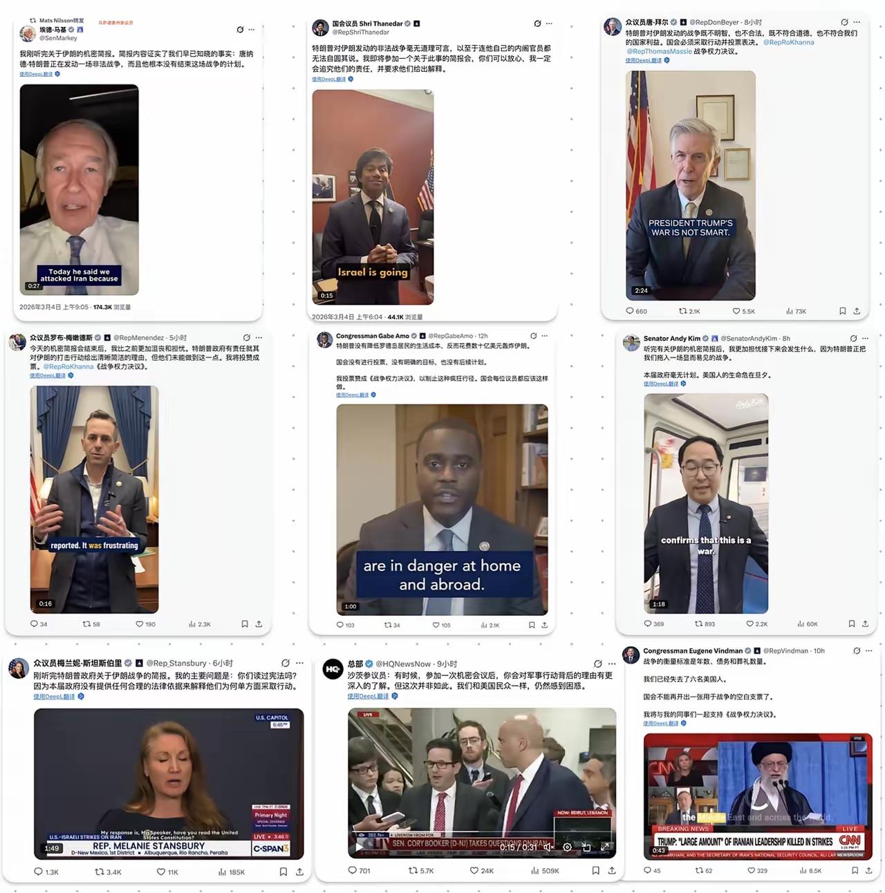 对特朗普的政治绞杀已经开始,美国议会举办了关于伊朗战争的机密简报会,但议员们纷纷表示参加会议后对这场战争更加担心了。他们依然不理解为何要进行这场战争,并对陷入新的战争泥潭感到担忧。 这场闭门简报会由美国国务卿、国防部长、中情局局长等高官联合主讲,全程涉密且不对公众开放,白宫原本希望借此统一国会立场、平息外界质疑,结果却让参会者的焦虑情绪彻底爆发。 两党议员在会上连续追问作战目标、撤军计划、军费预算与人员风险,全程没有得到明确且统一的答复,政府给出的动武理由多次变更,从防御性反击到摧毁导弹设施,说辞前后矛盾,根本无法说服在场的立法者。 五角大楼官员在简报环节私下承认,没有确凿情报证明伊朗计划对美国本土与驻军发动先发制人打击,这一表述直接戳破了白宫对外宣传的动武合法性。 参会的民主党议员直言这场战争建立在模糊的表述之上,共和党温和派议员也公开表示决策过于仓促,他们看着会议材料里的风险评估报告,脑海里不断浮现阿富汗与伊拉克战争的结局,两场耗时超二十年的中东战争,耗费数万亿美元军费,造成大量美军人员伤亡,最终都以长期僵持收场,没有实现任何既定的战略目标。 美军已经在此次对伊行动中出现伤亡,这个消息让本就不安的议员更加警惕。他们清楚战争一旦升级,就会出现任务蔓延的情况,原本的有限打击会逐步变成全面占领,美国会再次被拖进无法脱身的战争泥潭。 普通美国民众的态度同样明确,多家权威民调显示,超五成民众不赞成对伊军事行动,近六成民众认为政府没有完整的应对方案,超过六成民众坚持要求扩大军事行动必须经过国会投票批准,民众早已厌倦用海外战争转移国内矛盾的做法,更希望政府把精力放在通胀、就业等民生问题上。 外界口中的政治绞杀,从来不是单纯的党派攻讦,而是美国三权分立体系下的正常制衡,更是两党围绕战争决策权与选举利益的公开博弈。 民主党抓住未经国会授权、决策缺乏依据等关键点持续施压,试图削弱特朗普的政治声望。 共和党内部也出现明显分裂,鹰派议员支持军事行动,务实派议员则担心战争失控影响中期选举,不愿为可能失败的政策承担政治责任。 国会已经启动立法程序,两党跨党派议员联手提交战争权力决议案,要求限制总统单方面动武的权限,终止未经授权的敌对行动。这份提案打破了美国政坛长期的极化对立,成为当下少见的跨党派共识,也给白宫的军事决策套上了紧箍咒。 美国的对外军事行动早已脱离国家安全的核心需求,沦为政治斗争的工具。为了短期政治收益无视历史教训、忽视民众意愿,强行推动军事冲突,只会加剧中东地区的动荡,也会让美国国内的分裂进一步加深。当政治算计高于国家和平与民生福祉,最终承受代价的永远是普通民众。 各位读者你们怎么看?欢迎在评论区讨论。