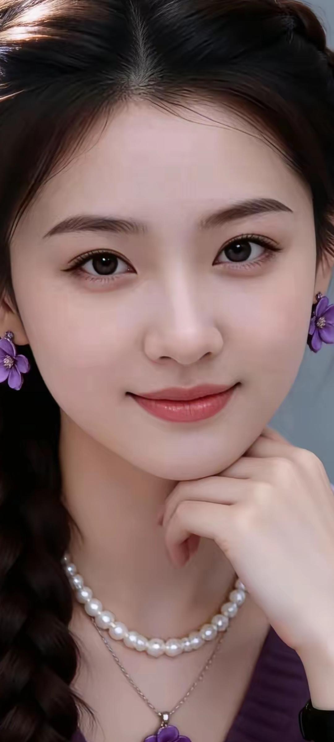 温柔甜美的少女心,珍珠项链与紫色耳环的完美搭配,尽显优雅气质。💖✨
