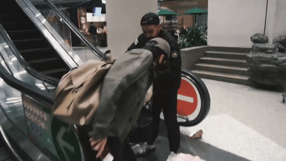 曾舜晞机场帮路人扶行李箱 扶梯口箱子倒了,曾舜晞已经走出几步远,回头看见又快步回来帮忙。他蹲下扶好箱子才离开,动作比助理还快。