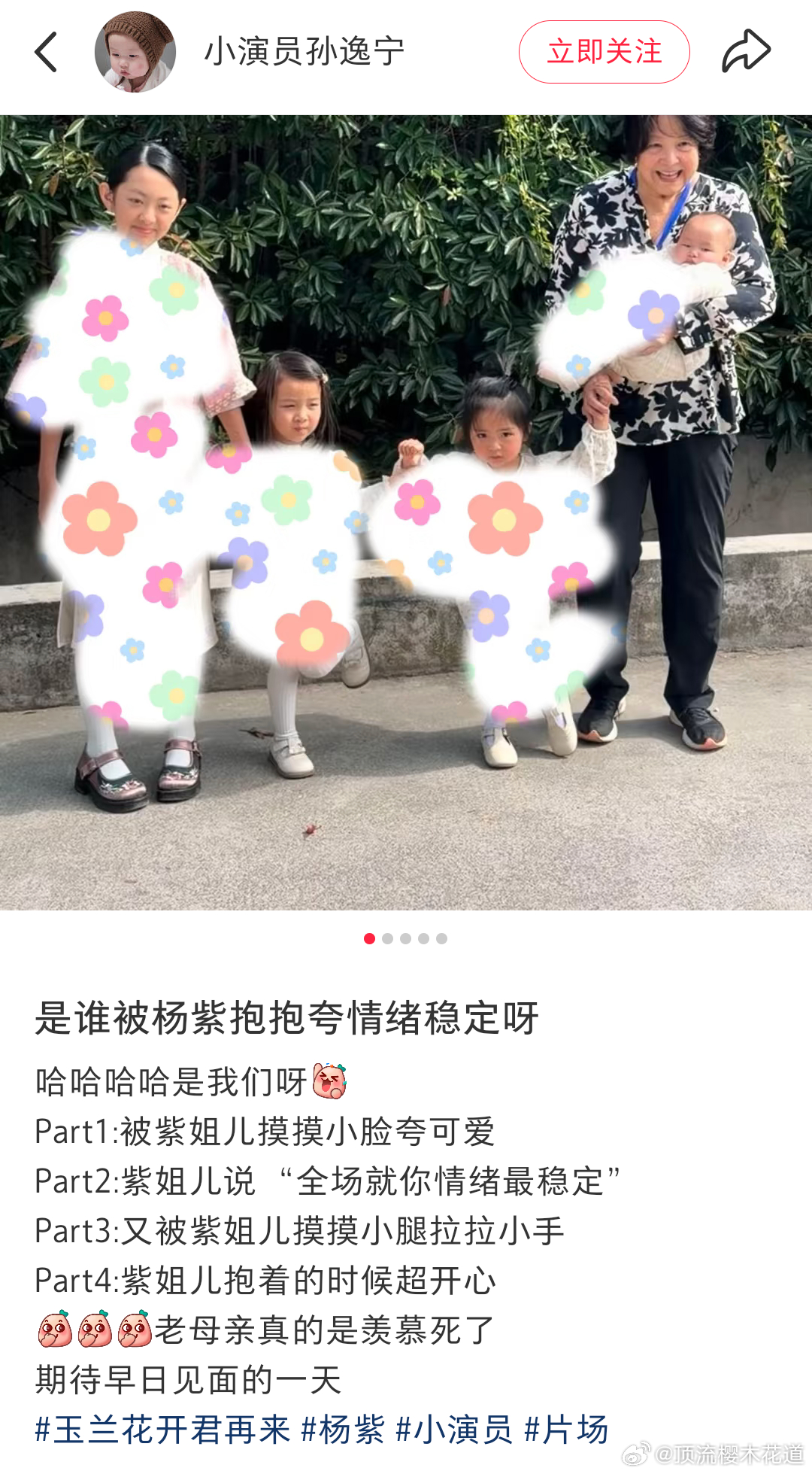 杨紫玉兰花开君再来生图,及几个饰演女儿的小朋友。