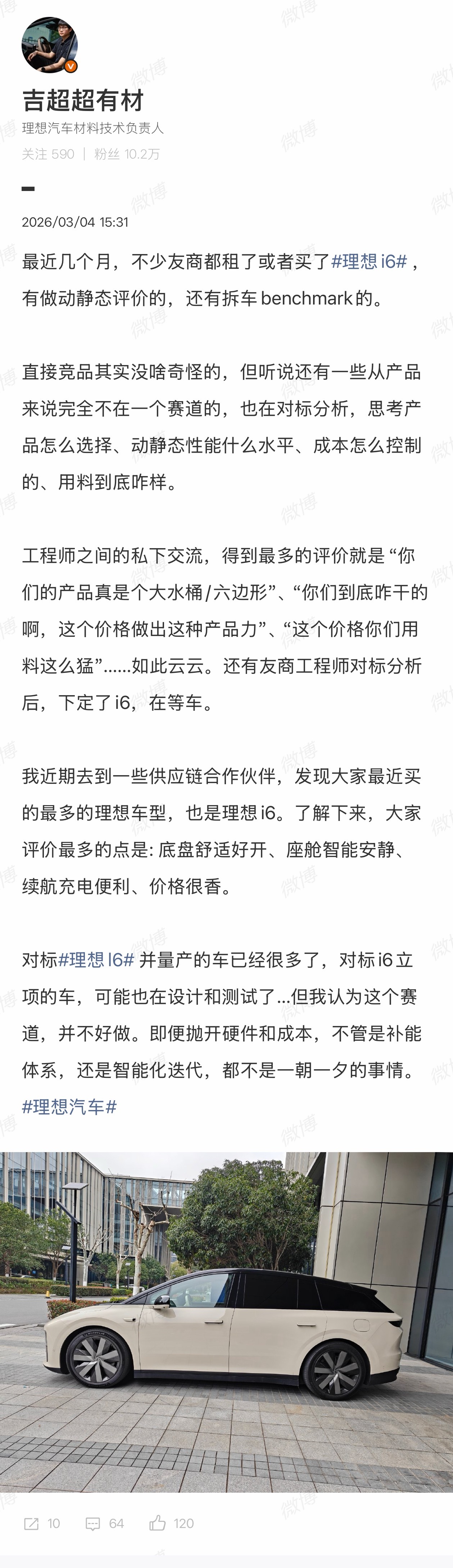 空间、舒适度、超充、续航、智驾、座舱、静谧性样样都好,说是水桶车实至名归,甚至外观对我来说都有情绪价值。