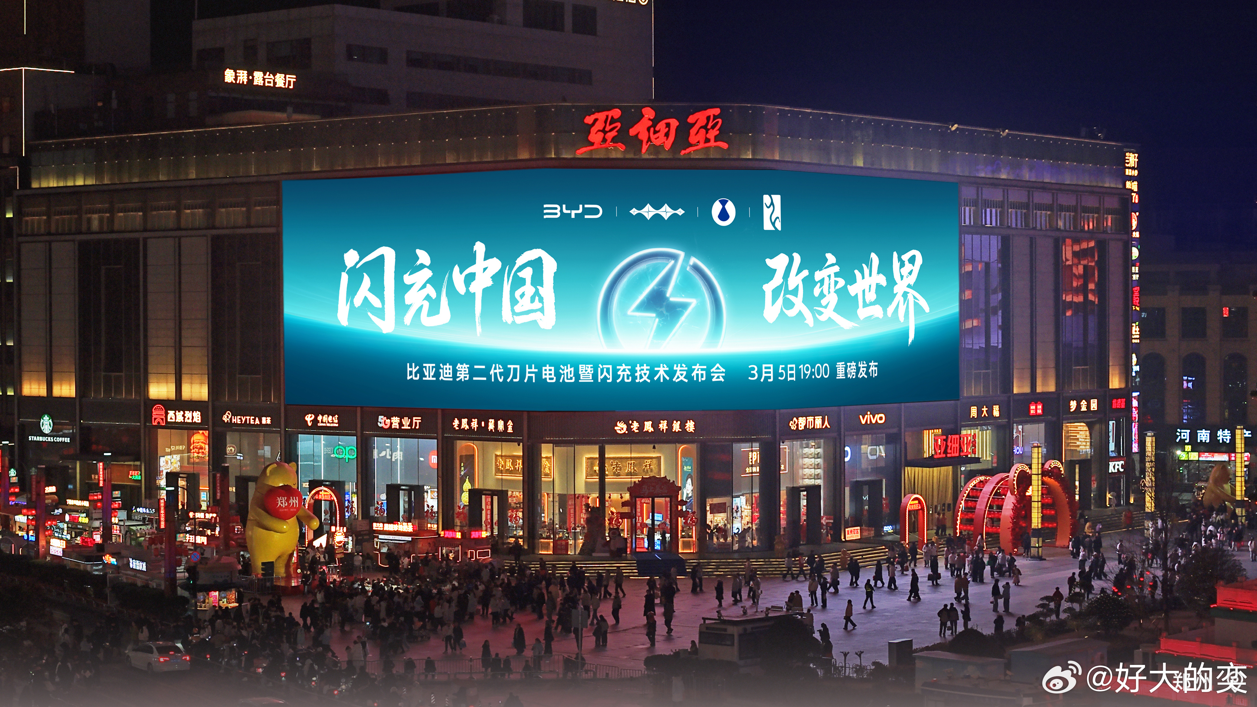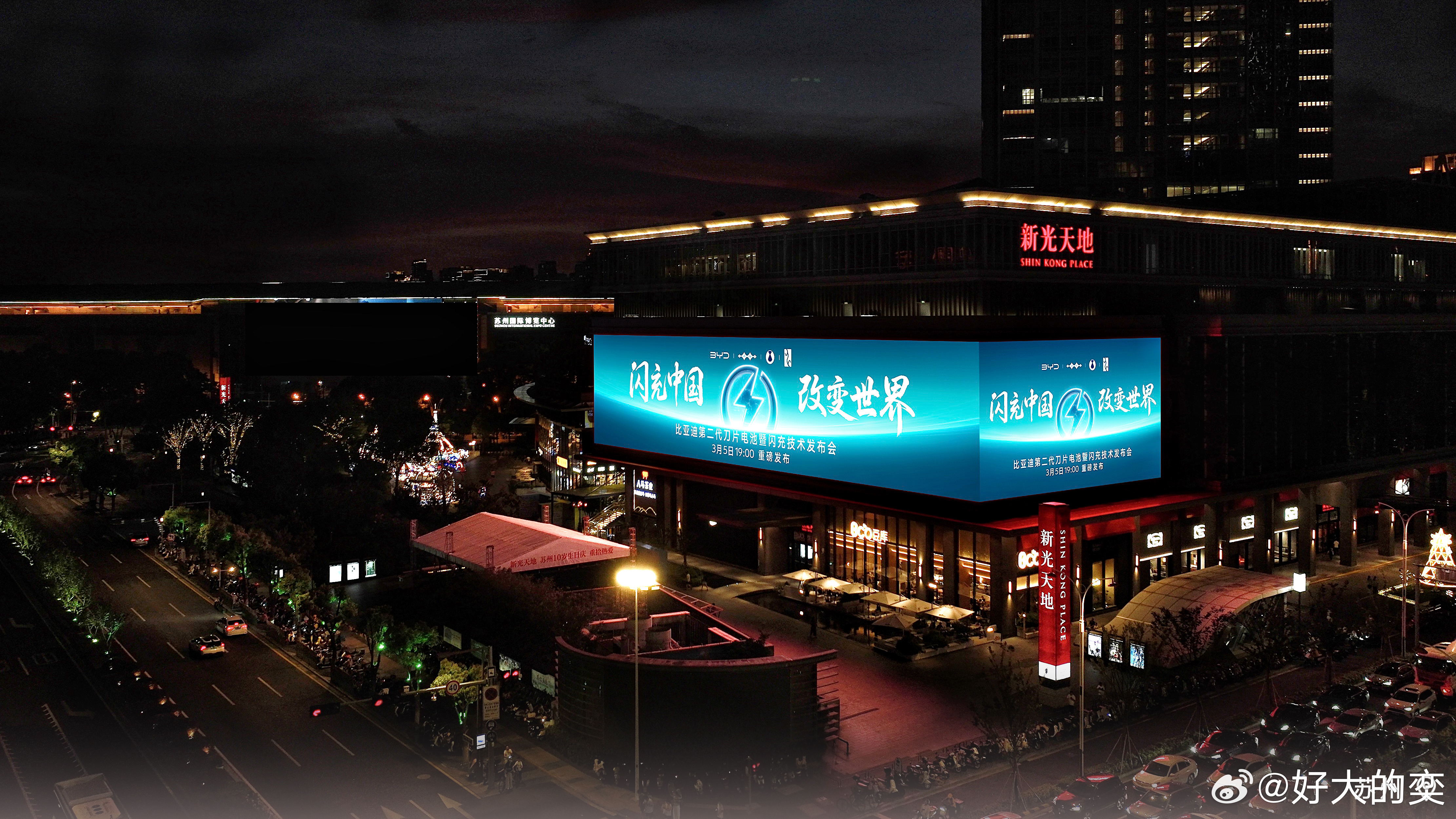 比亚迪第二代刀片电池及闪充技术,最近点亮全国多城CBD地标大屏。