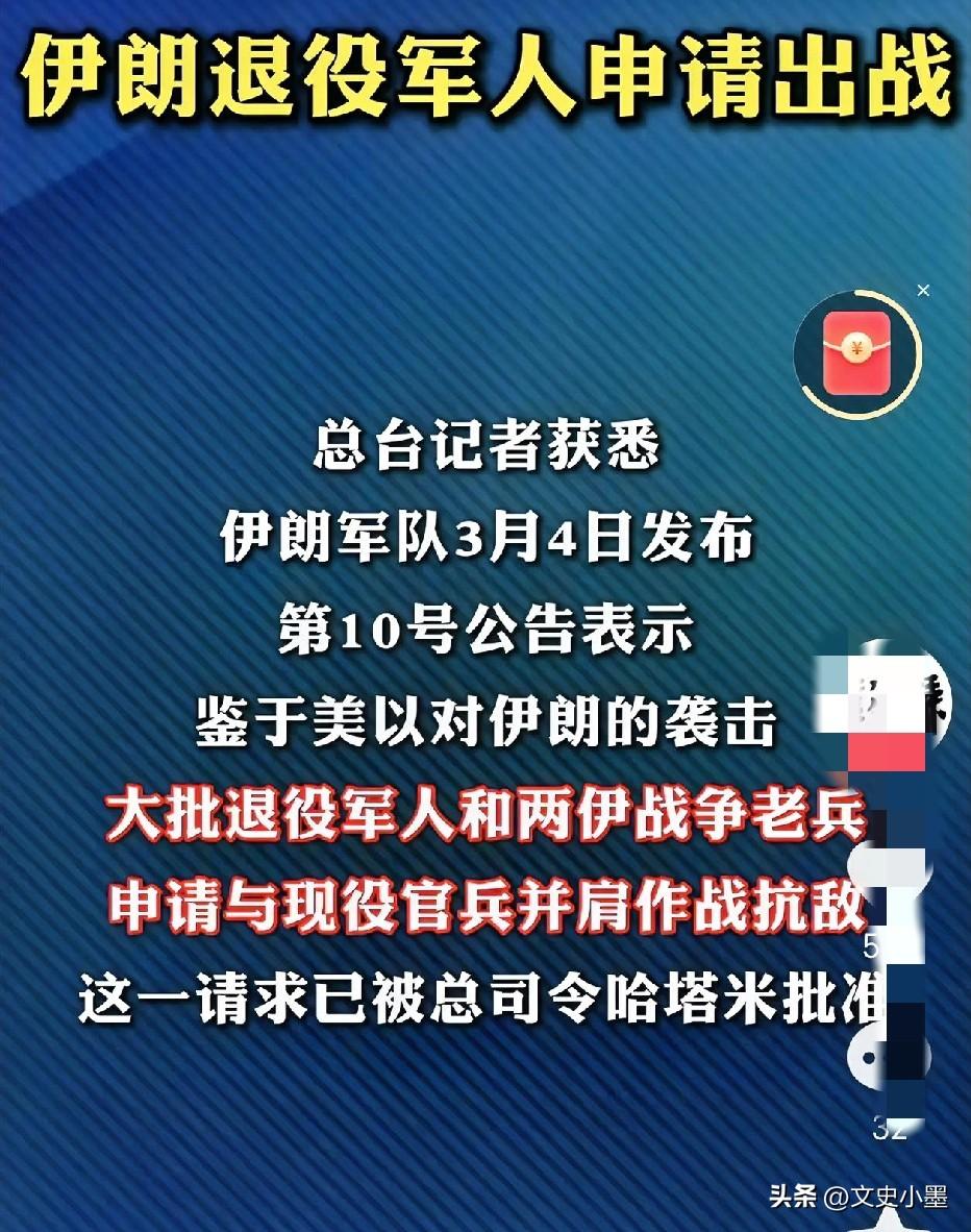 国难当头,匹夫有责!大批伊朗退役士兵和参加过两伊战争的老兵申请出战,与现役军人一同抗敌! 目前,伊朗伊斯兰共和国军队总司令哈塔米已经同意了这一申请! 并不是这些退役士兵和老兵有多厉害,即便这些老兵有丰富的实战经验,但普遍年龄大多在60岁左右了,更何况现在都是机械化战争了,拼的是飞机导弹等高端武器,不是以往那种单纯靠人多就能获胜的传统战争了! 他们申请参战向外界传递了一个坚定的信号,伊朗全国现在上下一心拧成了一股绳,同仇敌忾对付外敌的信心非常坚定! 这一点是美以非常担心的,伊朗越打越团结是他们没想到的,接下来的几周将非常关键,如果冲突仍然不能结束,伊朗很可能会占据主动,把这场冲突拖入持久战,这是美国最不愿意看到的结果! 因为美国有前车之鉴!美国在阿富汗打了20年,消耗了大量的军力和金钱,但结果并没有达到预期!伊朗比阿富汗更有韧性,难度可想而知!美国一旦陷入泥潭,将很难脱身!