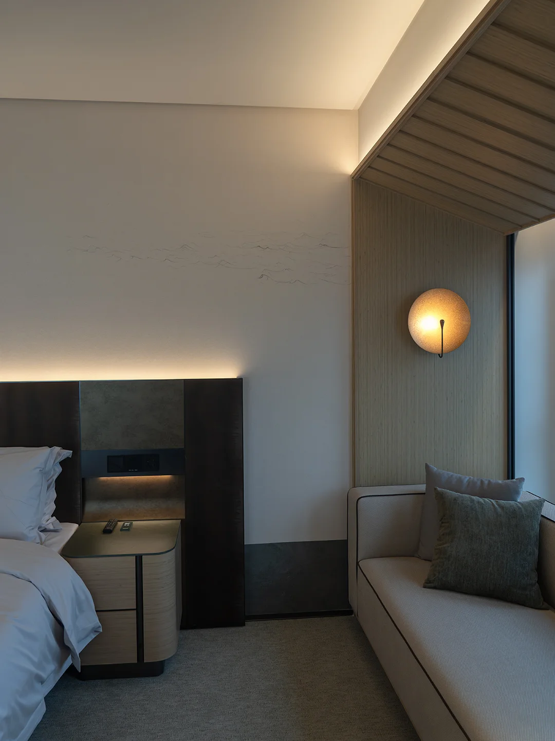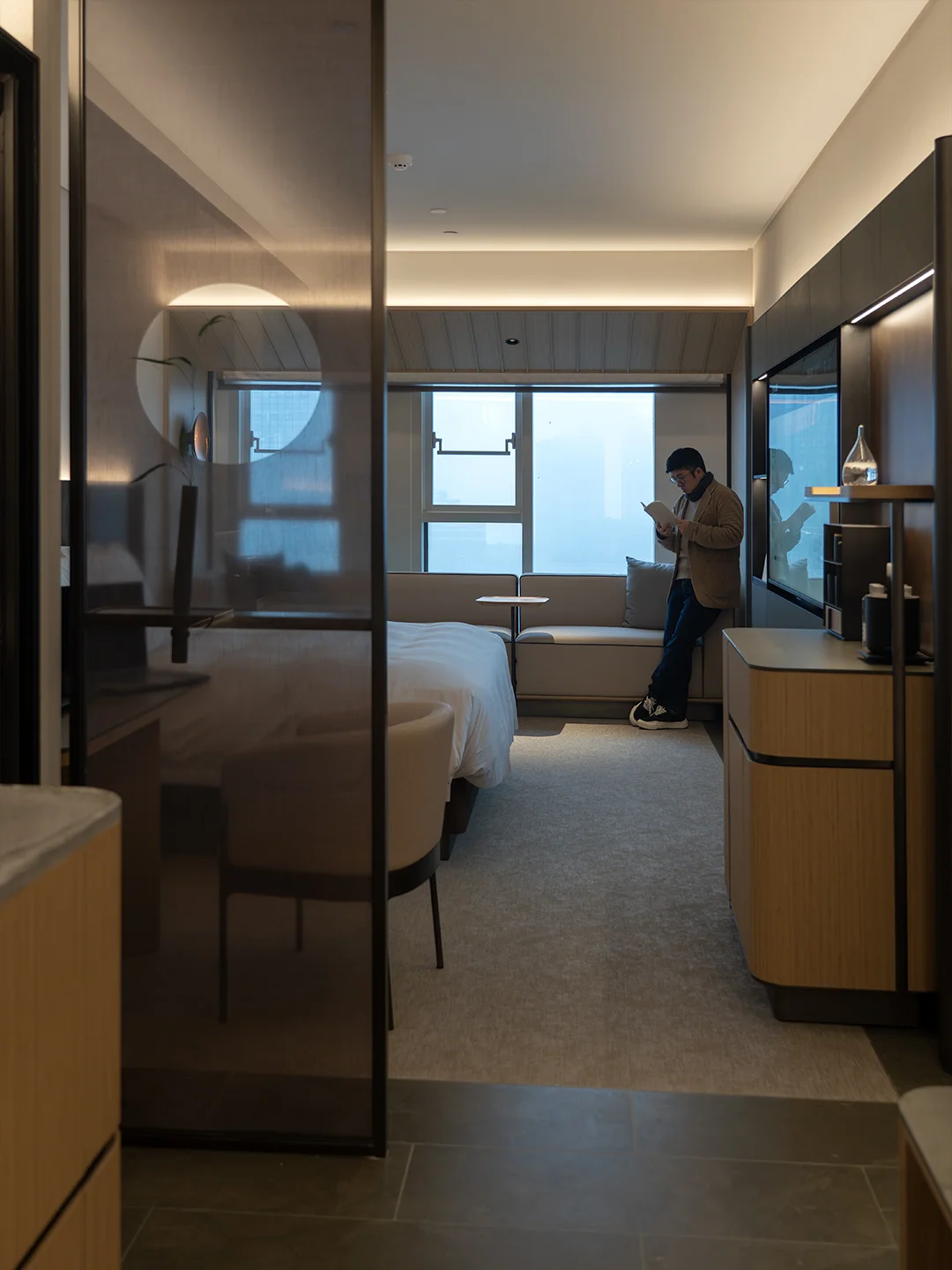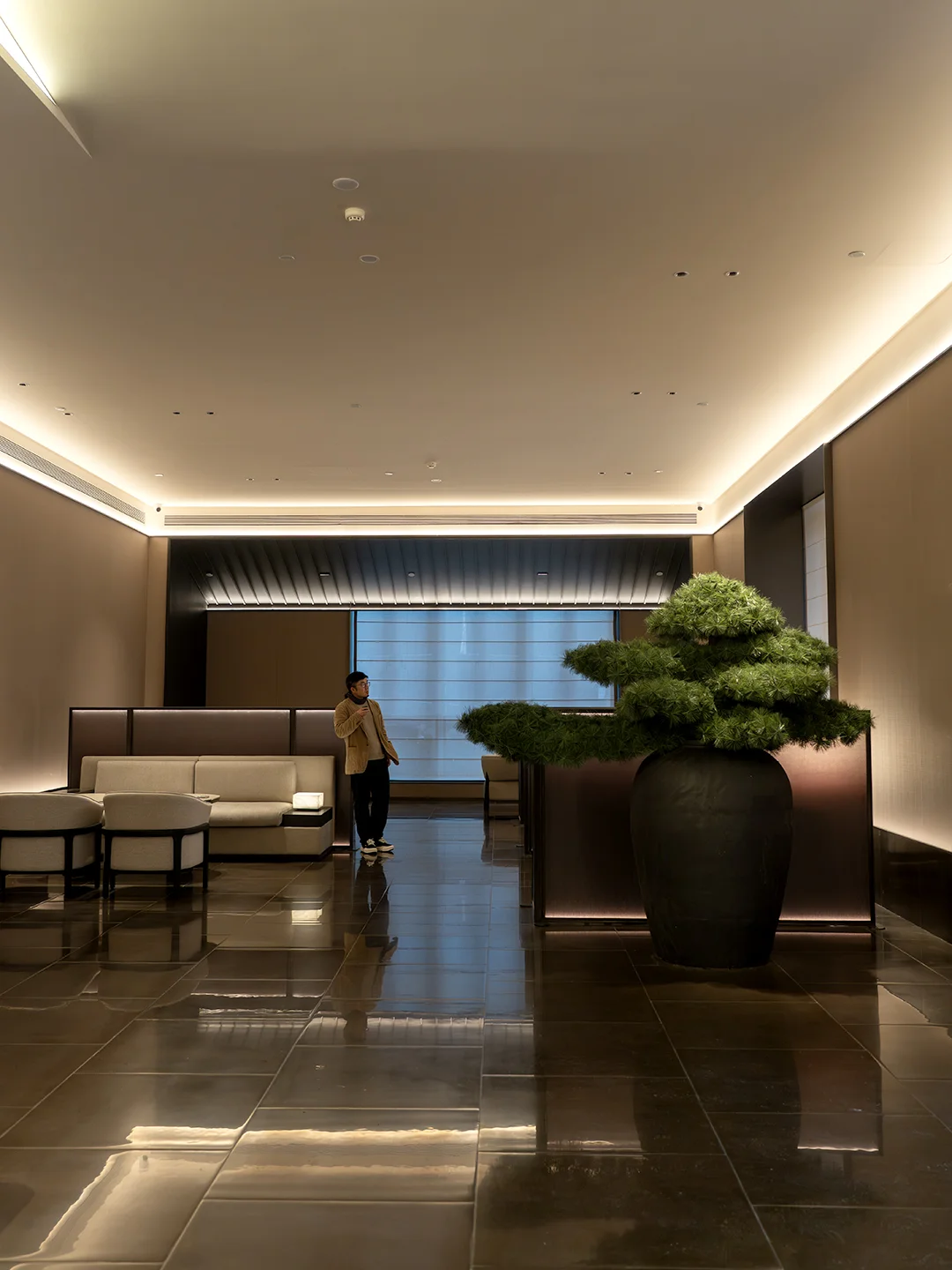 进门第一感觉是大堂像个小美术馆。不是那种金碧辉煌,而是充满艺术质感,摆了几件看得见用心的器物。办入住时前台递了杯茶,温温热热的,我刚好想喝。