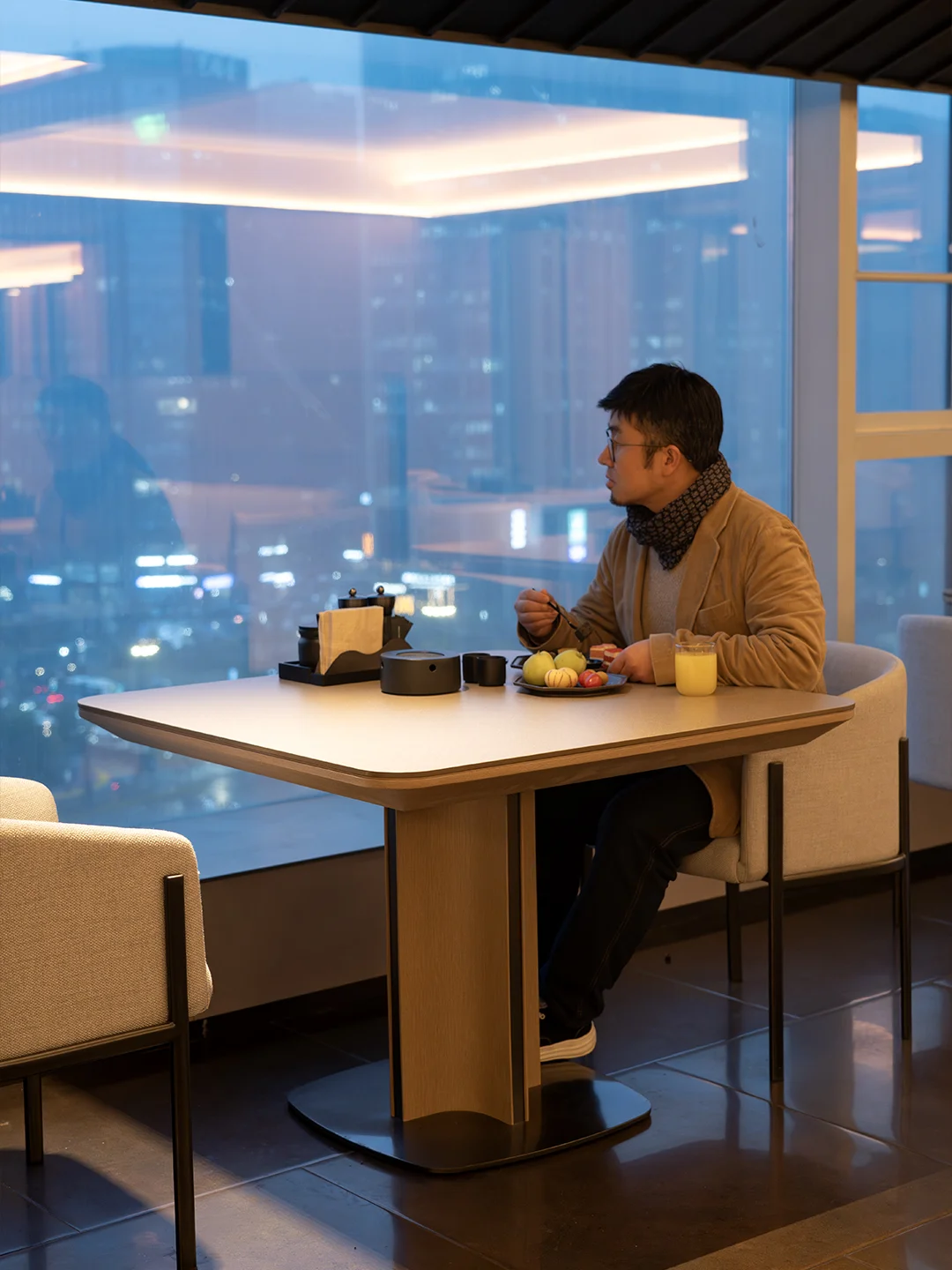 位置在钱江新城,离西湖开车十分钟出头,但周围安静得多。打车去灵隐那天早上,师傅说你们住这儿挺好,景区的另一边,现在堵得完全进不去。