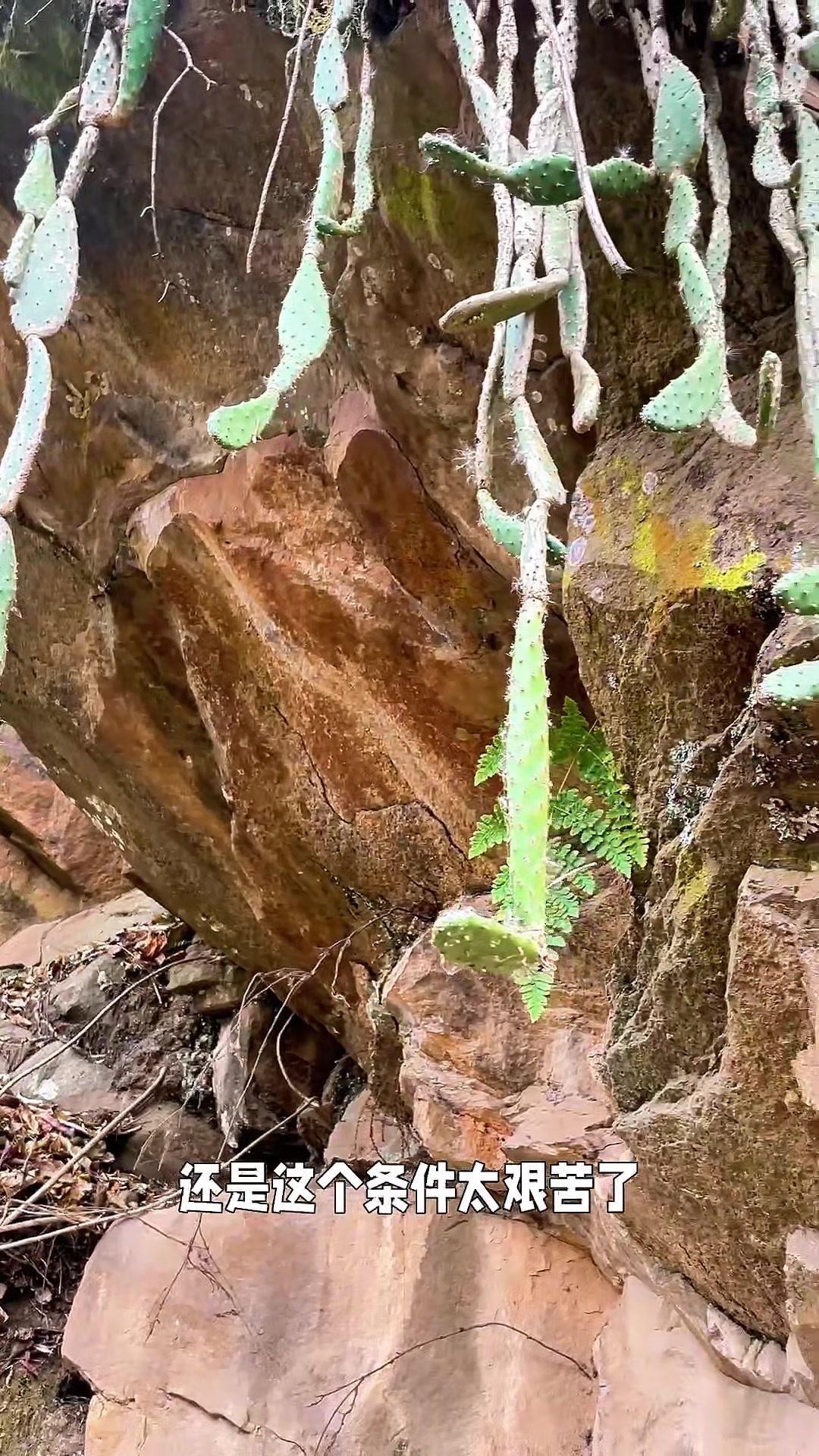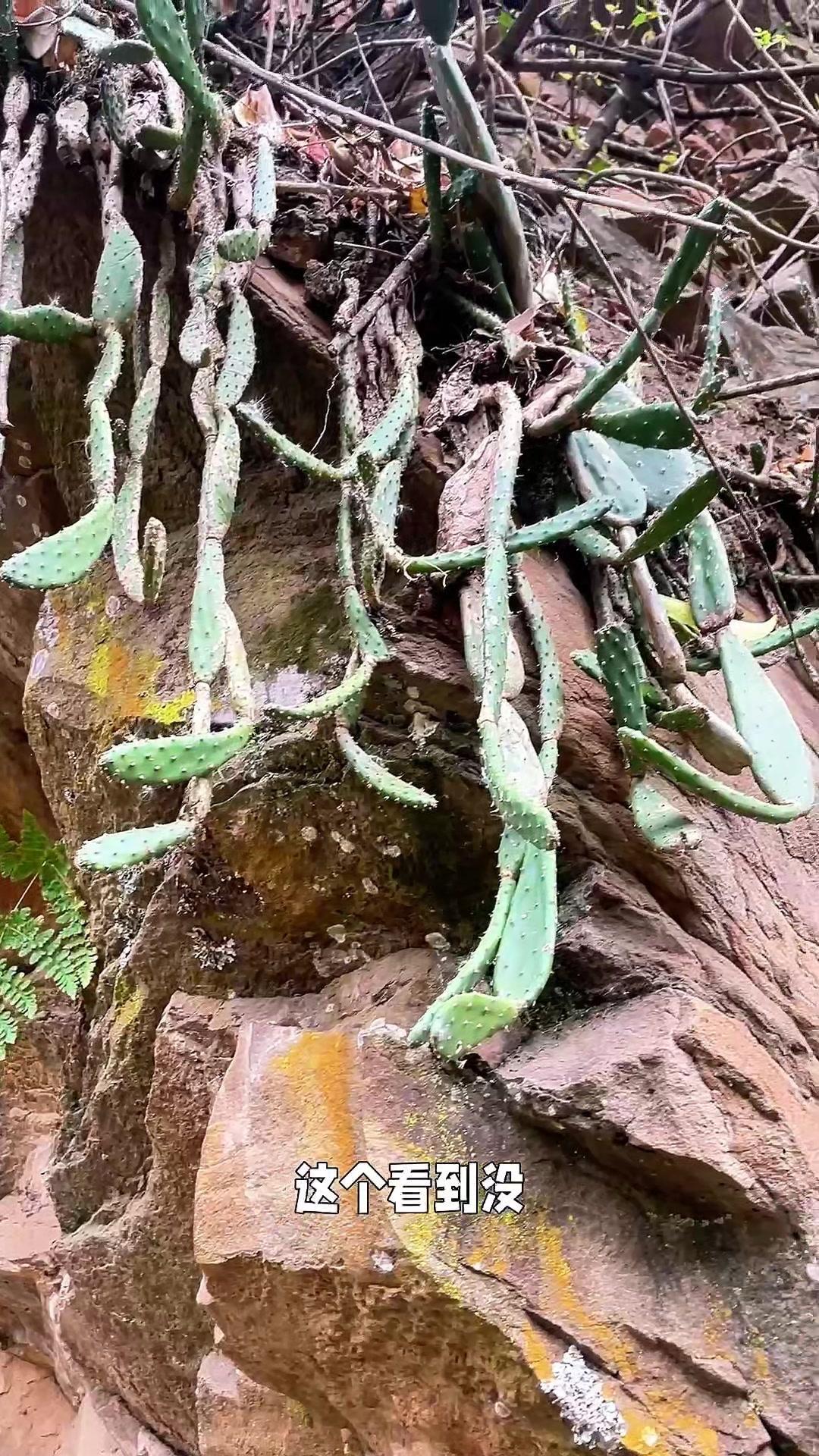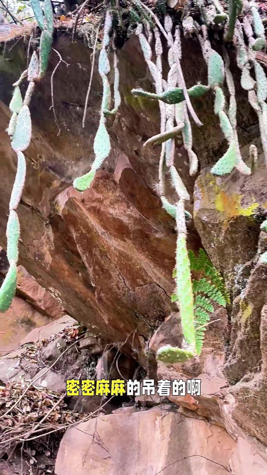 在山里发现了超震撼的悬崖倒挂仙人掌! 第一次见仙人掌像吊兰一样往下长,一般仙人掌都是向上生的,这个却顺着崖壁密密麻麻地吊着。应该是品种不同,或者生长环境太艰苦,它只能这样顽强生长。石缝里只有一点泥土,却依旧生机盎然,实在太神奇了! 你们见过这样倒着长的仙人掌吗?