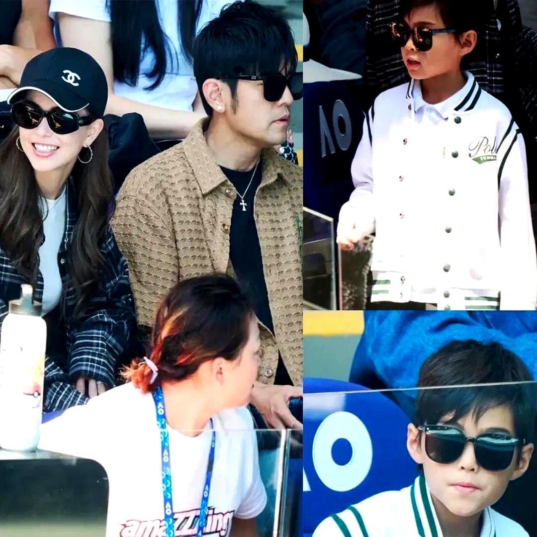 墨镜一摘,全网都炸了。周杰伦儿子正面曝光,8岁的Romeo让所有人倒吸一口气。 他不是像爸爸,他是直接复制粘贴。澳网观众席上,小家伙一身白色运动服,墨镜架在鼻梁上。周杰伦在身后揉了下鼻子,几乎同一秒,前排的Romeo抬起手,做了完全相同的动作。网友截下这段神同步,评论区瞬间沸腾。昆凌的混血基因给了他高挺的鼻梁和清晰的轮廓,但那个抿嘴的弧度,下颌线的走向,活脱脱就是二十年前唱片封面上的周董。 这孩子三岁握拍,六岁就拿过青少年冠军。周杰伦曾半开玩笑说,家里第一个网球冠军不是我。这次他们全家飞澳洲,就是陪儿子追梦。镜头扫过时,Romeo正专注地盯着球场,阿尔卡拉斯一个扣杀,他跟着全场一起鼓掌,那份沉稳完全不像八岁孩子。 最好的遗传不是五官,是那种刻在骨子里的从容。父亲给了他音乐的天赋,母亲给了他混血的精致,而网球给了他专注的眼神。周杰伦守护了孩子的童年,孩子则活成了父母最骄傲的作品——不用活在聚光灯下,却自带光芒。