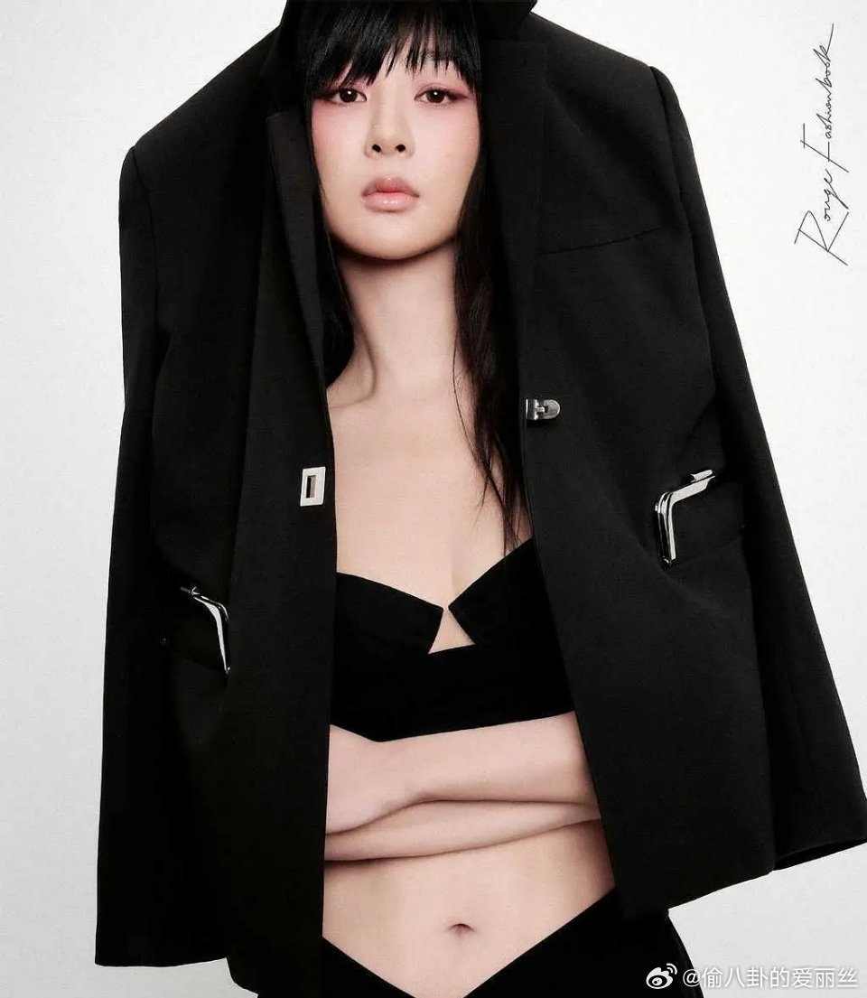 孔雪儿麻花辫少女:一袭黑白色调长裙,光影浮动,动人摄魄。孔雪儿