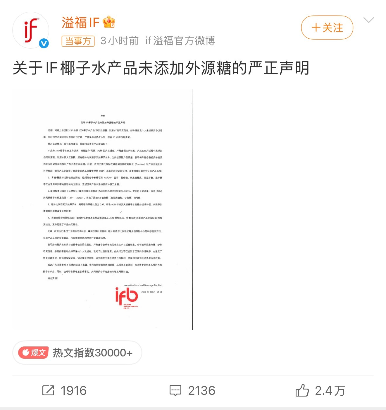 IF椰子水严正声明感觉有没有外加糖原很简单,晚上睡觉前喝上一瓶,第二天早上起来嘴里面难受的,又涩又苦的那种,大概率就是外加了糖源,要是嘴里面比较舒服,那应该就问题不大。